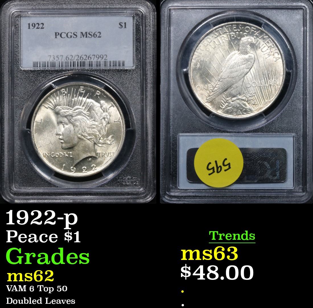 PCGS 1922-p Doubled Leaves VAM 6 Top 50 Peace Dollar $1 Graded Select Unc By PCGS.