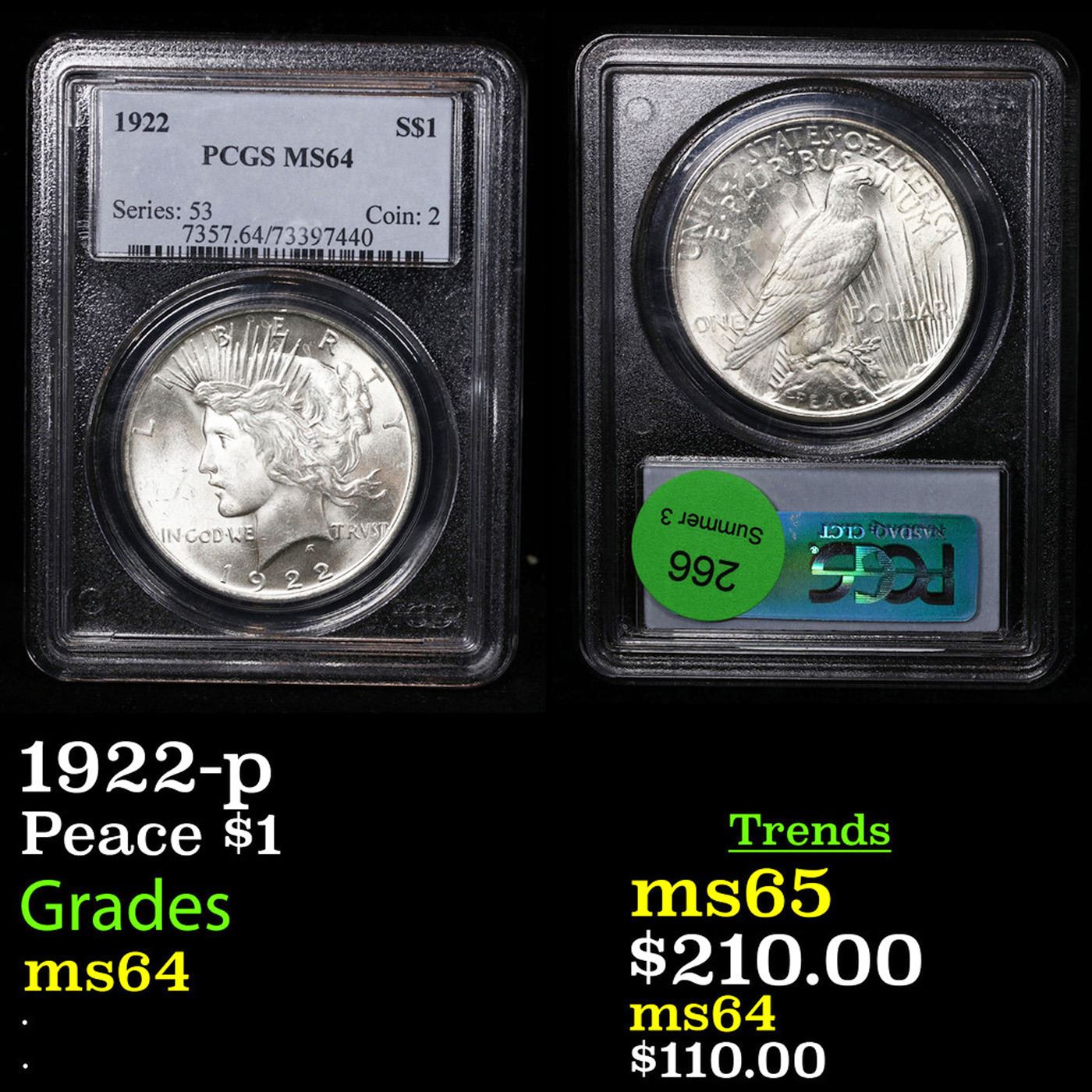 PCGS 1922-p Peace Dollar $1 Graded ms64 By PCGS.