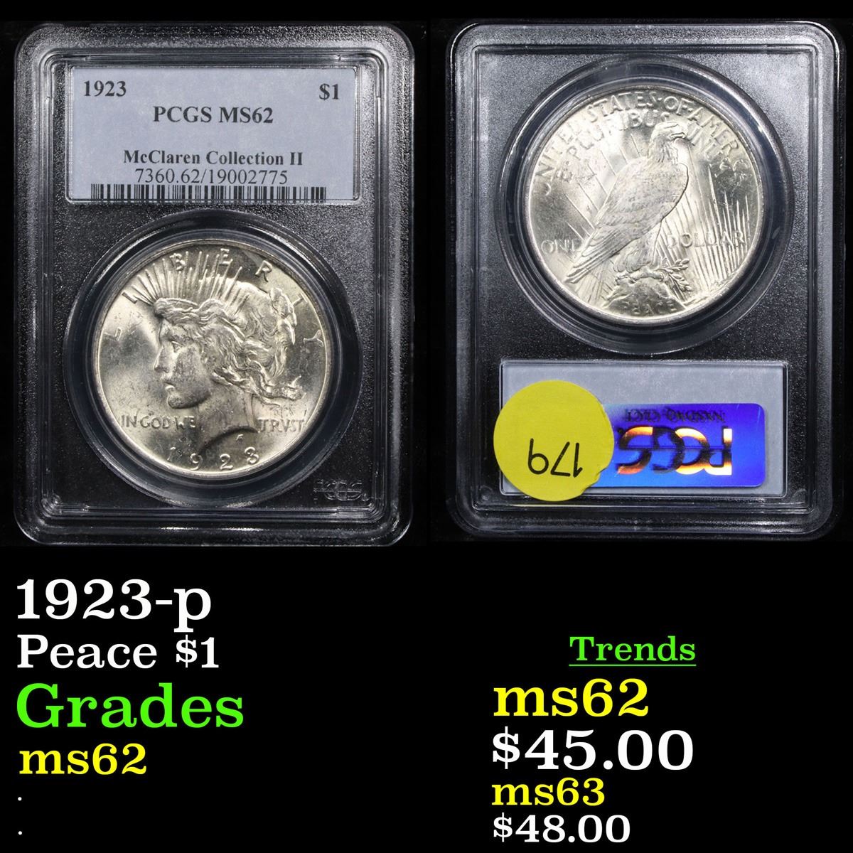 PCGS 1923-p Peace Dollar $1 Graded ms62 By PCGS.