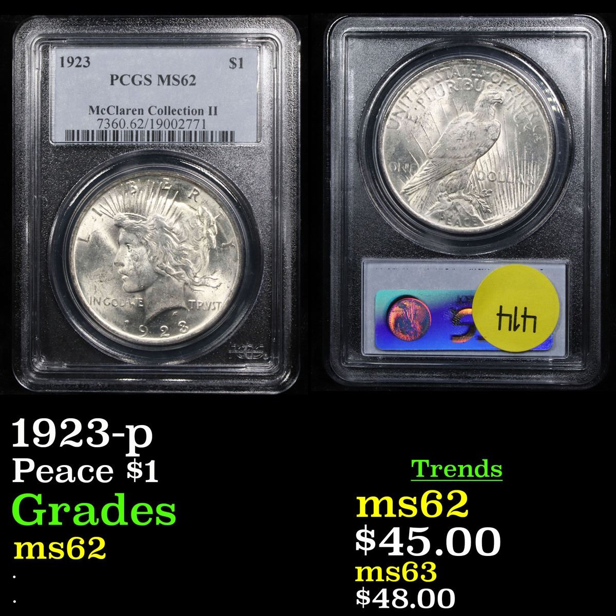 PCGS 1923-p Peace Dollar $1 Graded ms62 By PCGS.
