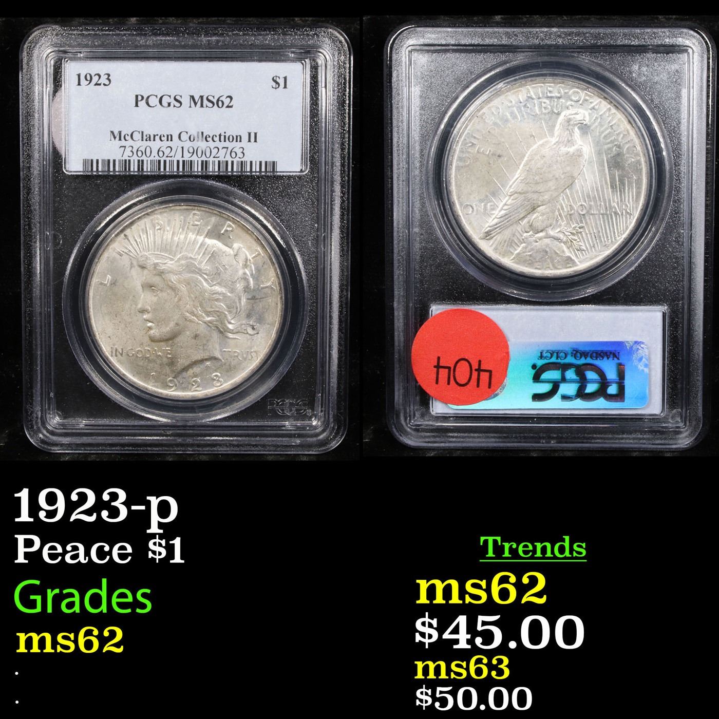 PCGS 1923-p Peace Dollar $1 Graded ms62 By PCGS.