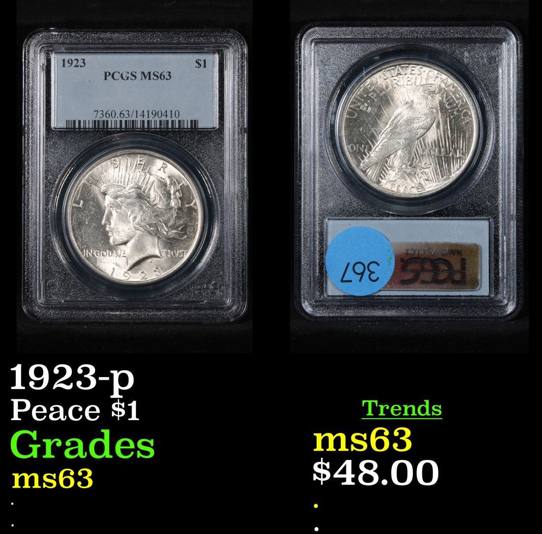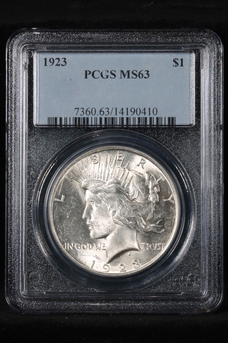 PCGS 1923-p . . Peace Dollar $1 Graded ms63 By PCGS.