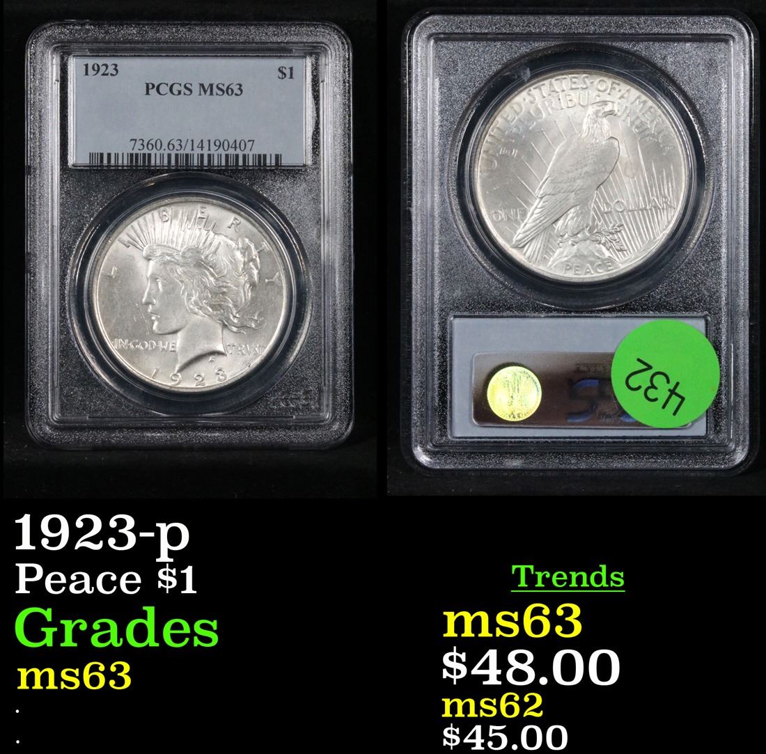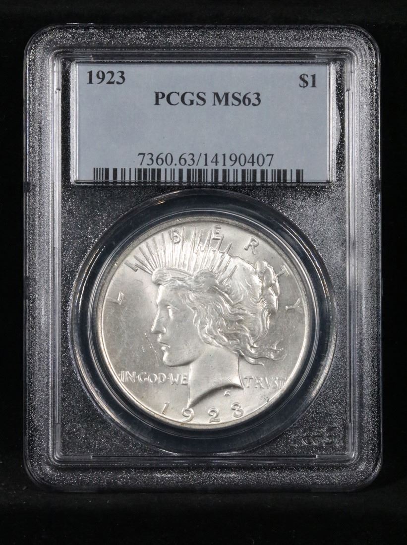 PCGS 1923-p . . Peace Dollar $1 Graded ms63 By PCGS.