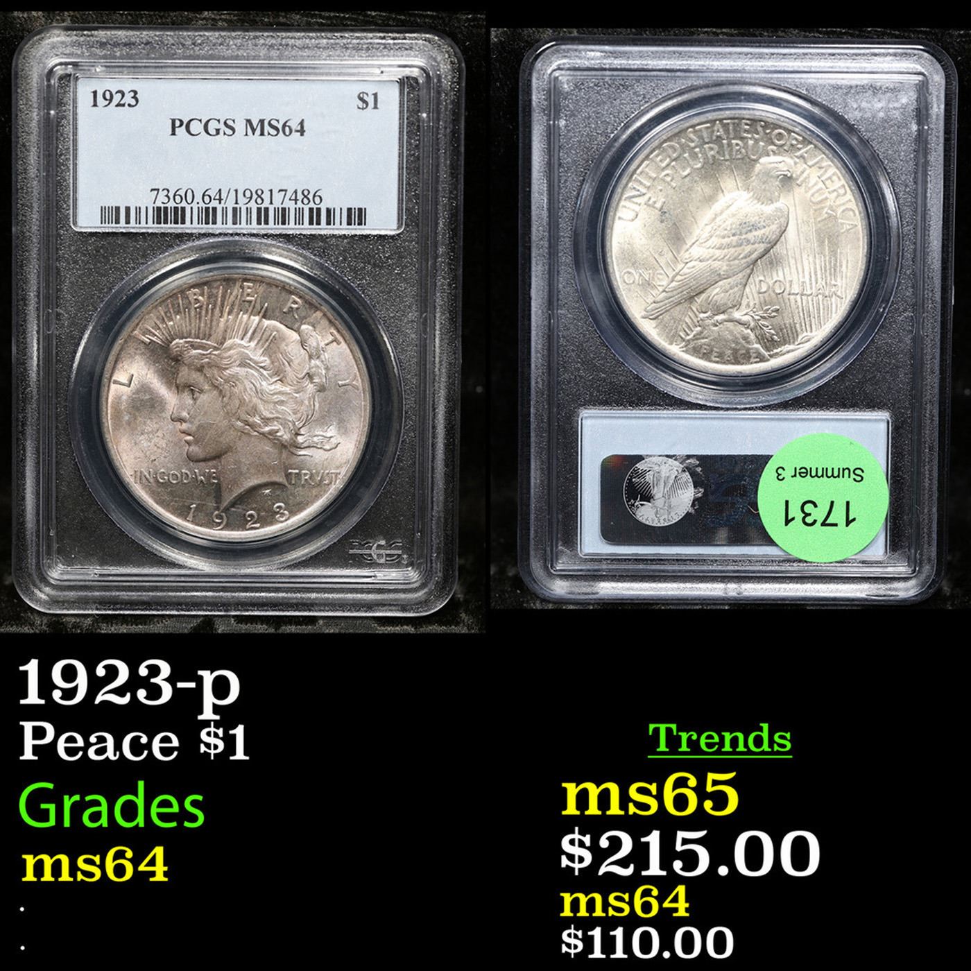 PCGS 1923-p Peace Dollar $1 Graded ms64 By PCGS.