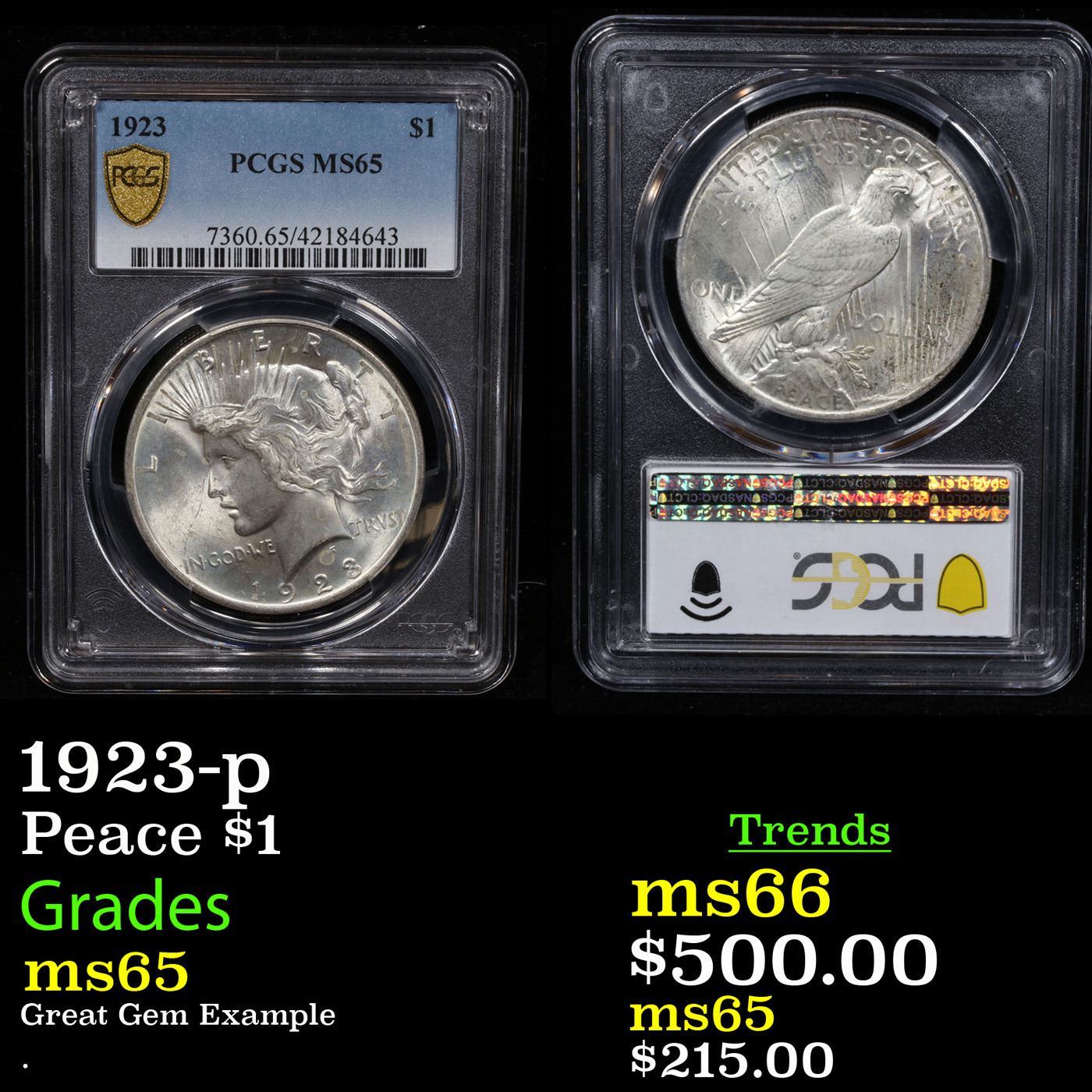 PCGS 1923-p Peace Dollar $1 Graded ms65 By PCGS.