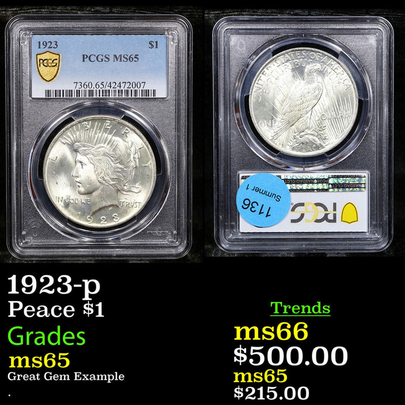 PCGS 1923-p Peace Dollar $1 Graded ms65 By PCGS.