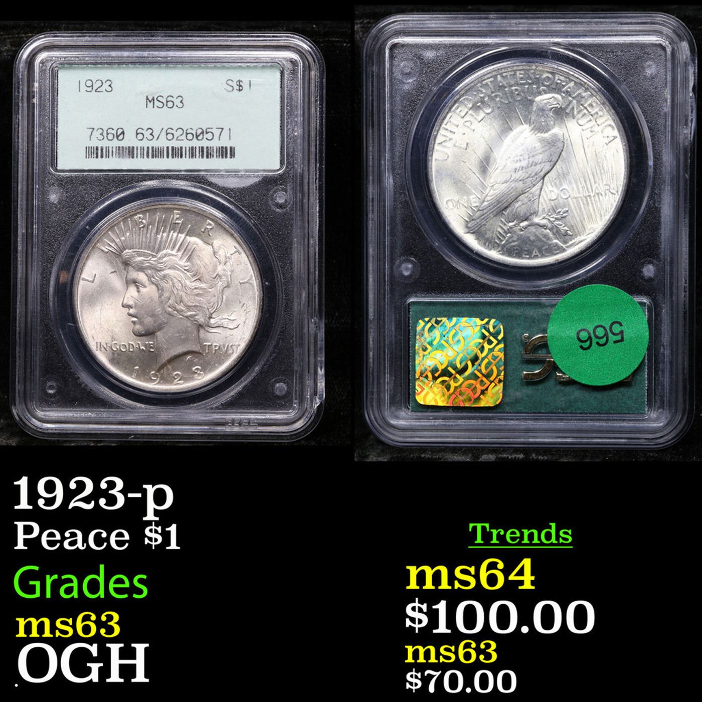 PCGS 1923-p OGH Peace Dollar 1 Graded ms63 By PCGS.