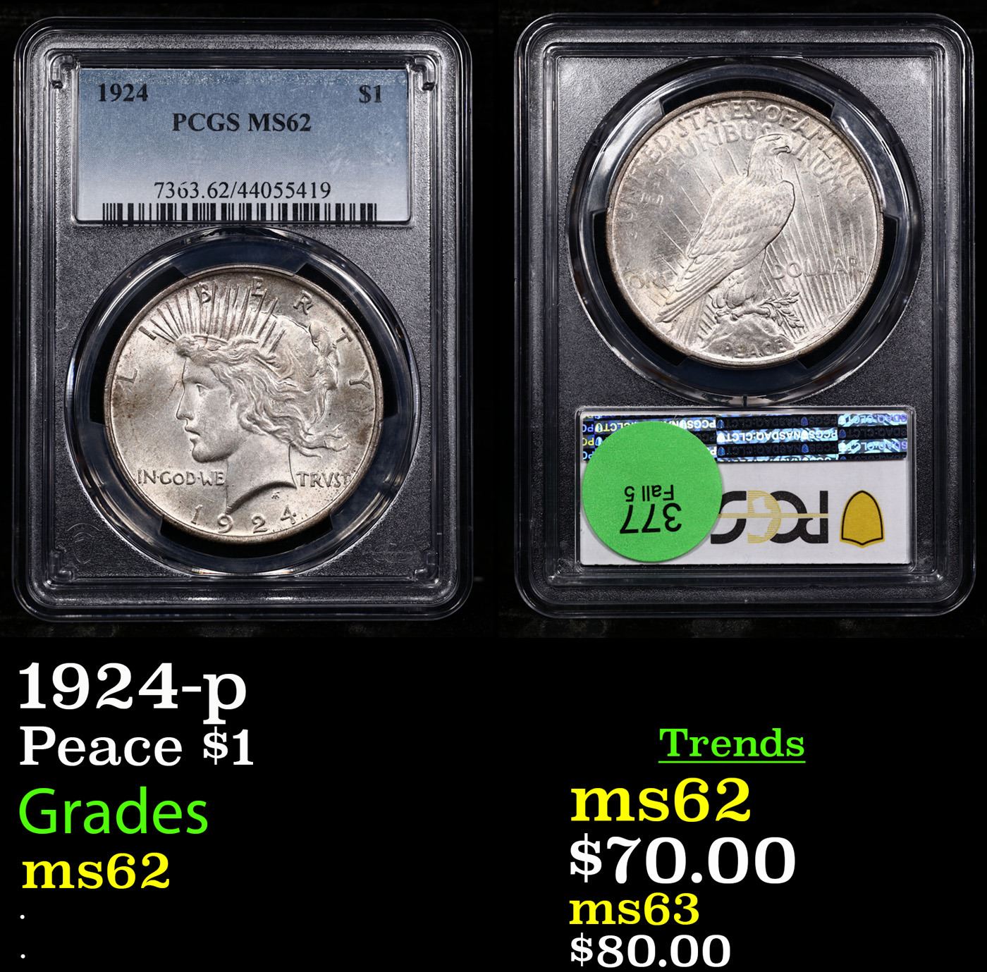PCGS 1924-p Peace Dollar $1 Graded ms62 By PCGS.