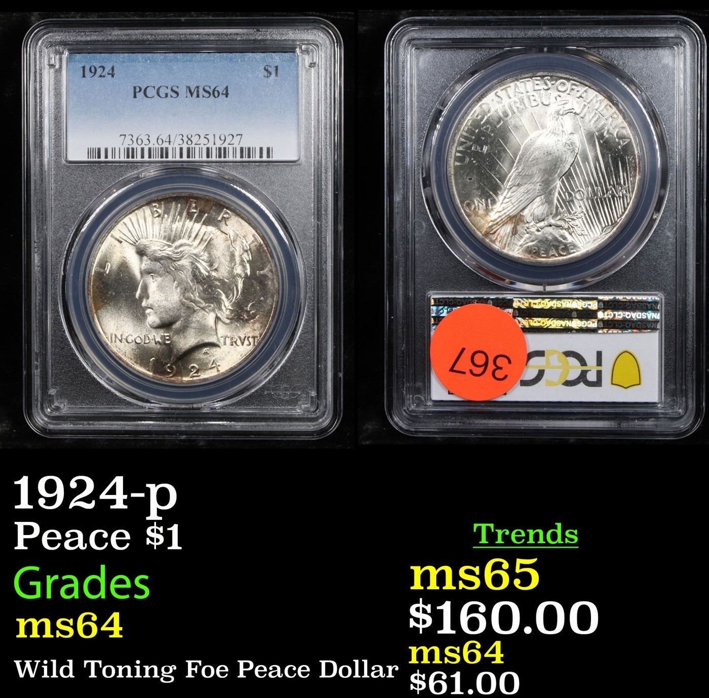 PCGS 1924-p Peace Dollar $1 Graded ms64 By PCGS.