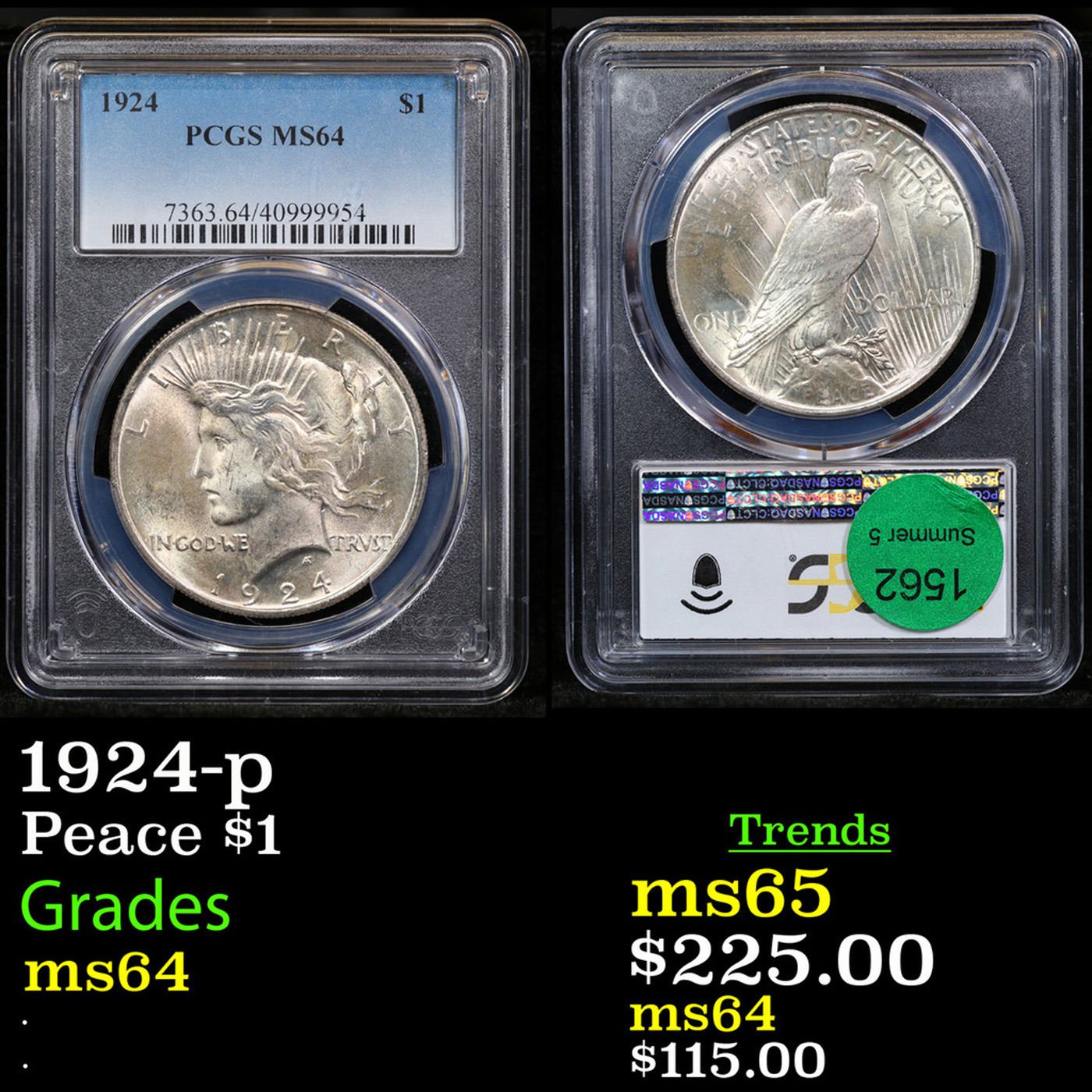 PCGS 1924-p Peace Dollar $1 Graded ms64 By PCGS.