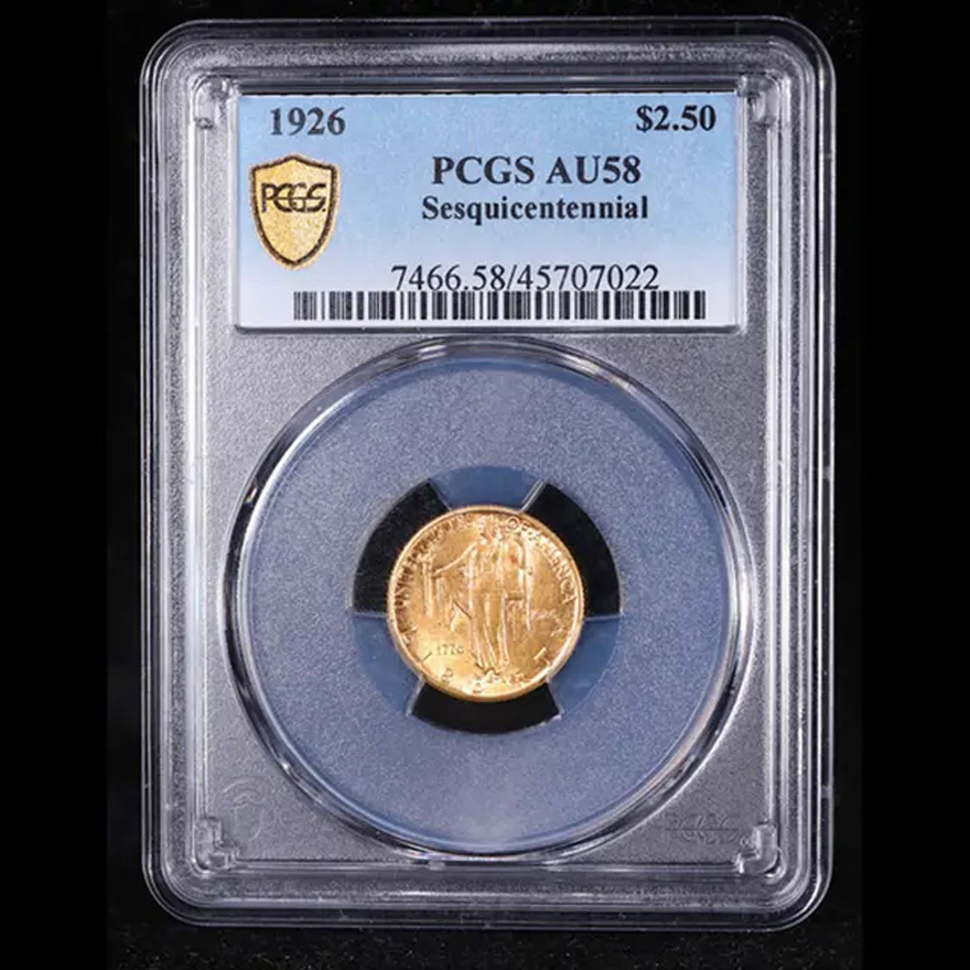 PCGS 1926 Sesquicentennial Gold Commem $2 1/2 Graded au58 BY PCGS.