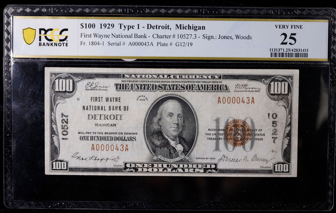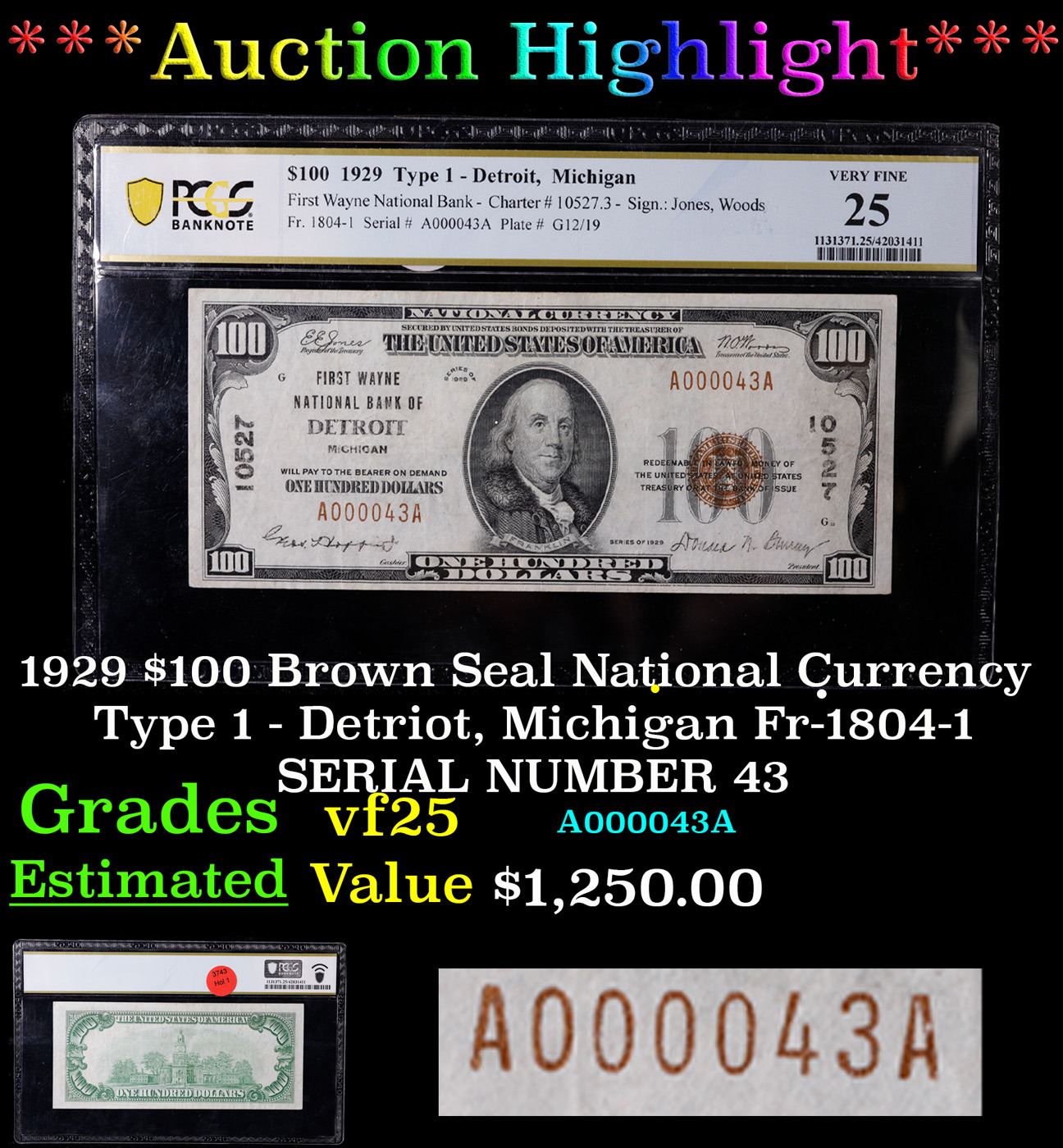 PCGS 1929 $100 Brown Seal National Currency Type 1 - Detriot, Michigan Fr-1804-1 Graded vf25 By PCGS. A Corey's Pick, Bid to Win Coin