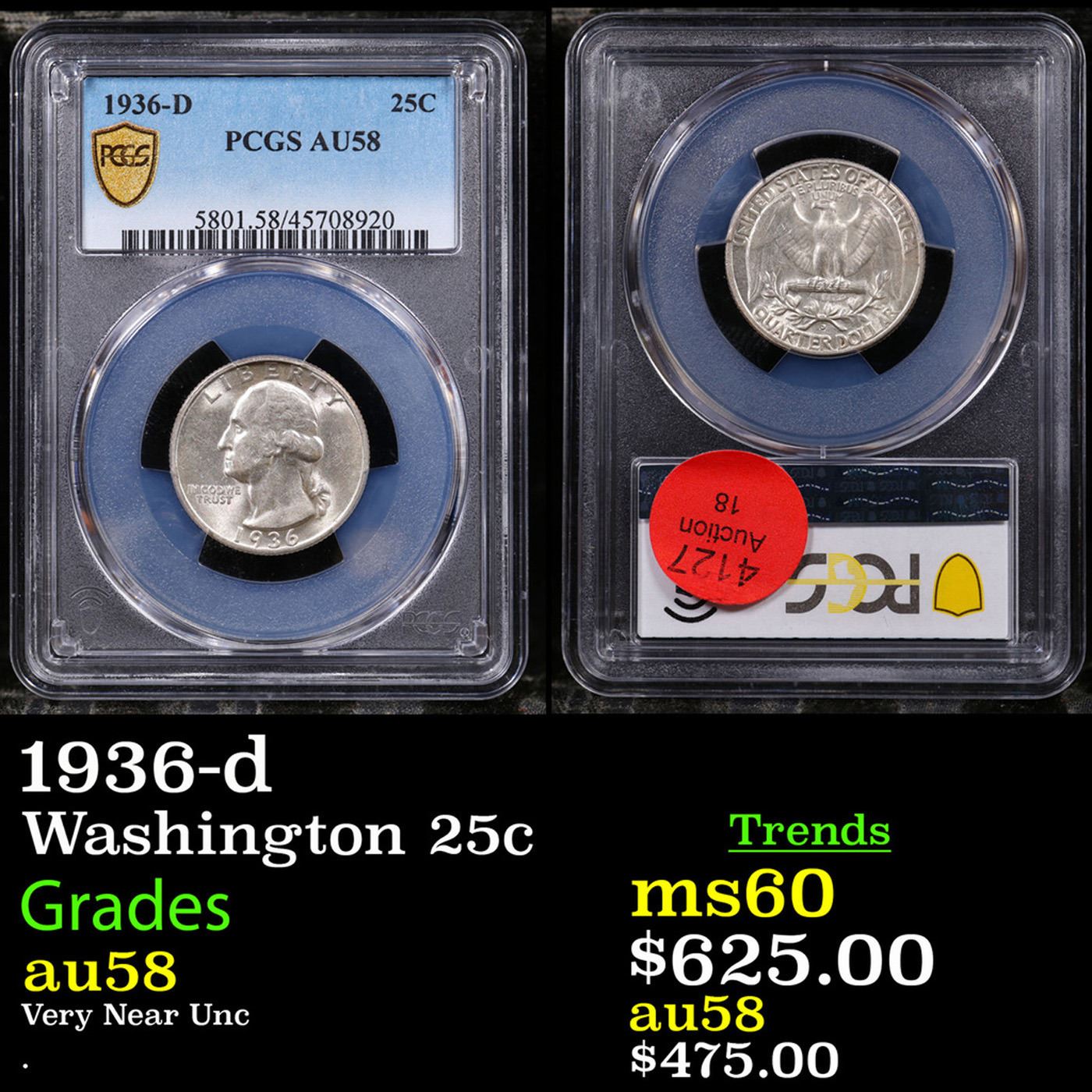 PCGS 1936-d Washington Quarter 25c Graded au58 By PCGS.