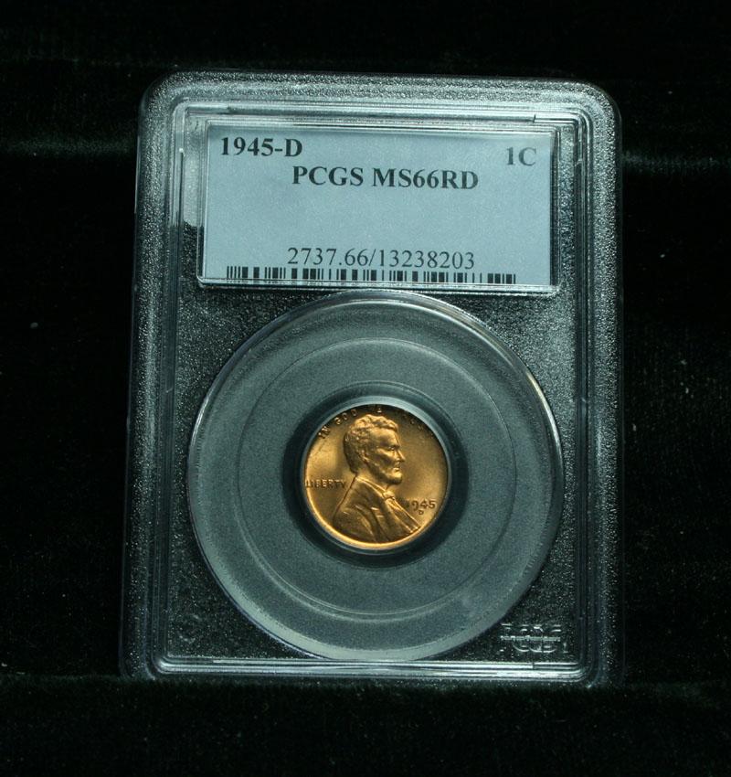 Attractive red example of this WWII issue. Great eye appeal. Graded by America's #1 and harshest grading company, PCGS. PCGS lists an ms66 RD at $35 and ms67 RD at $190. Estimated Value $30