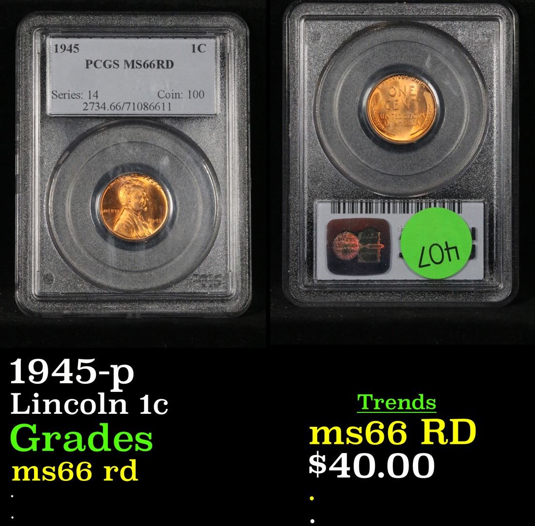 PCGS 1945-p . . Lincoln Cent 1c Graded ms66 rd By PCGS.