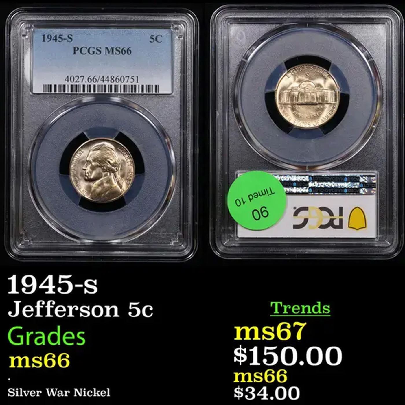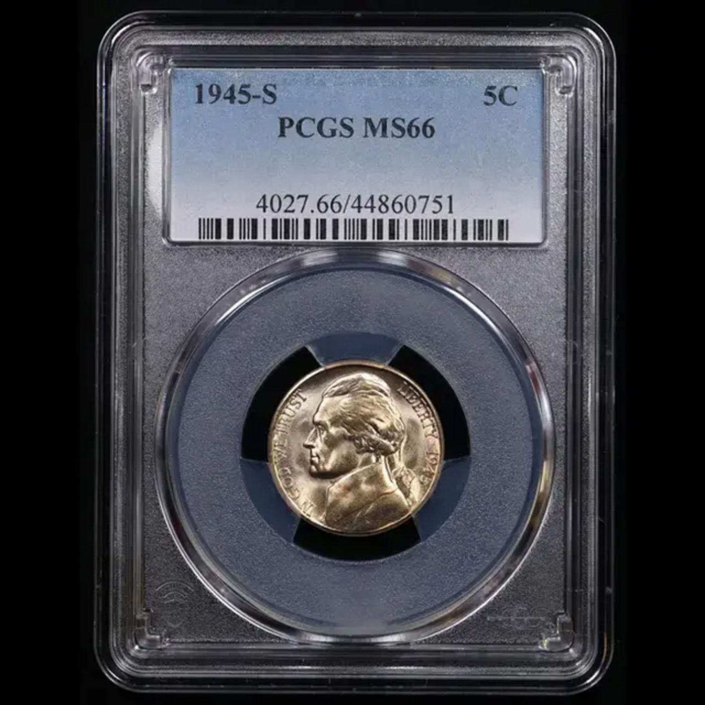 PCGS 1945-s Jefferson Nickel 5c Graded ms66 by PCGS.