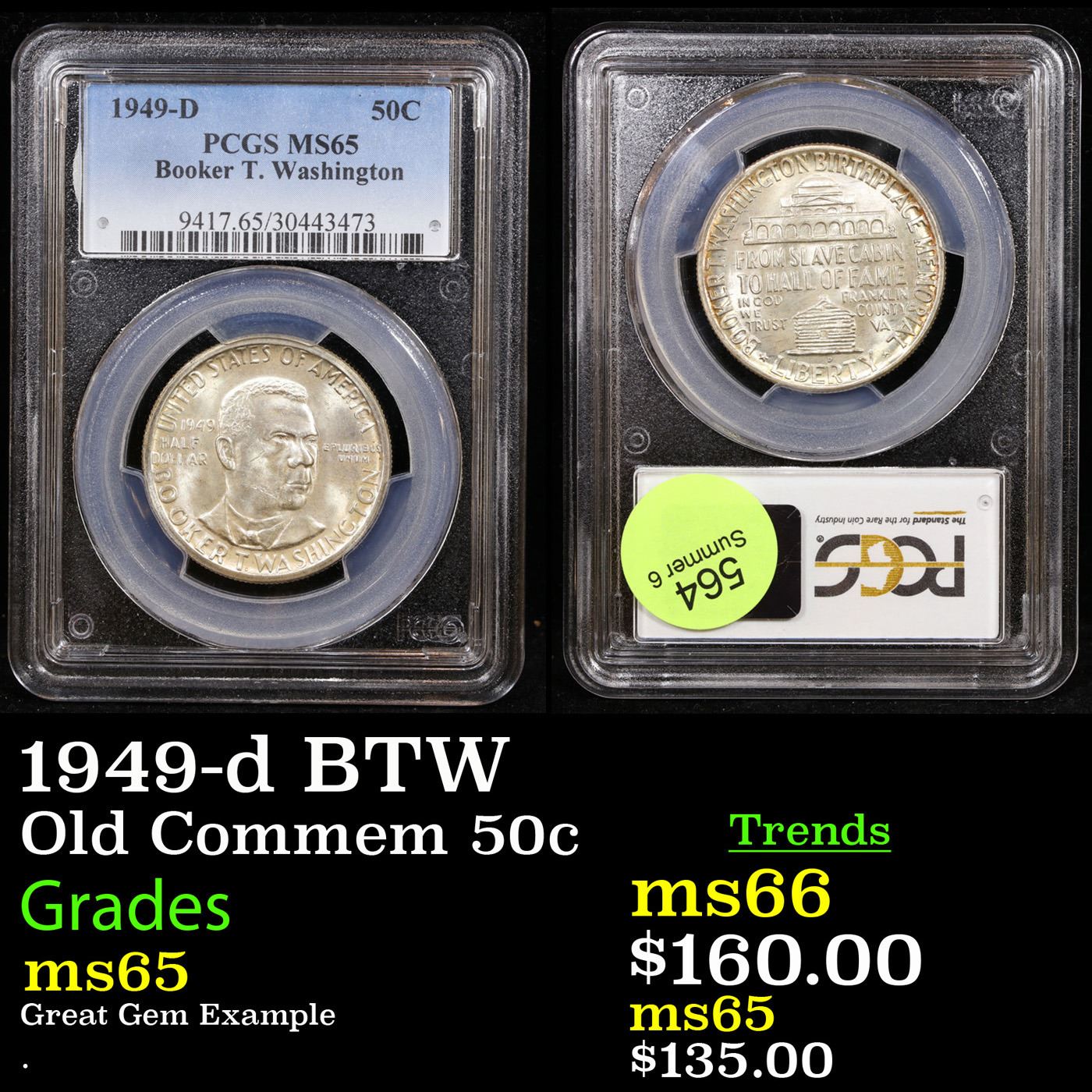 PCGS 1949-d BTW Old Commem Half Dollar 50c Graded ms65 By PCGS. When examining a Booker T. Washington commemorative look for wear on the high points, on the obverse that is Mr. Washington's right Cheek (from his perspective), and on the reverse the arches on the top building.