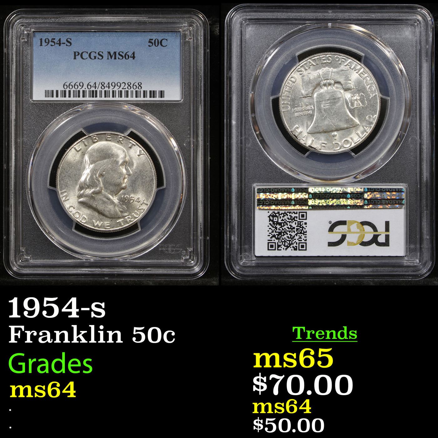 PCGS 1954-s Franklin Half Dollar 50c Graded ms64 By PCGS.