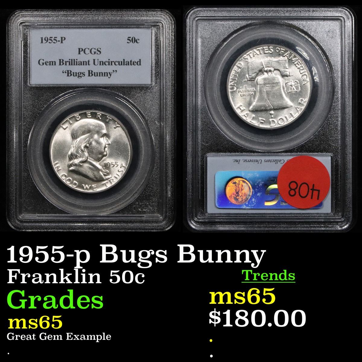 PCGS 1955-p Bugs Bunny . Great Gem Example Franklin Half Dollar 50c Graded ms65 By PCGS.