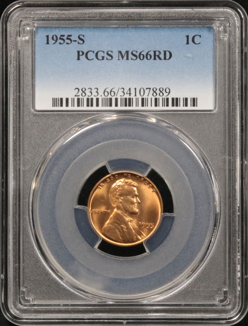 PCGS 1955-s Lincoln Cent 1c Graded GEM+ RD By PCGS.