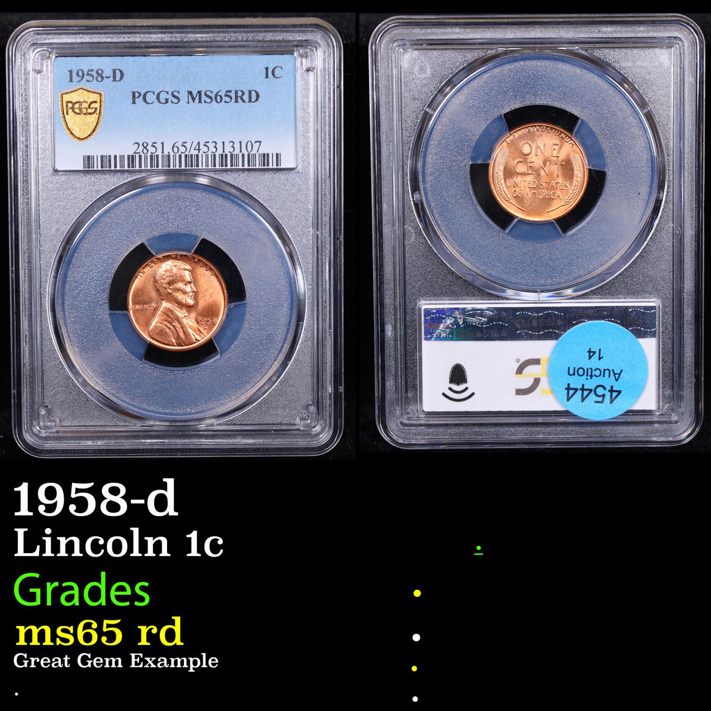 PCGS 1958-d Lincoln Cent 1c Graded ms65 rd By PCGS.