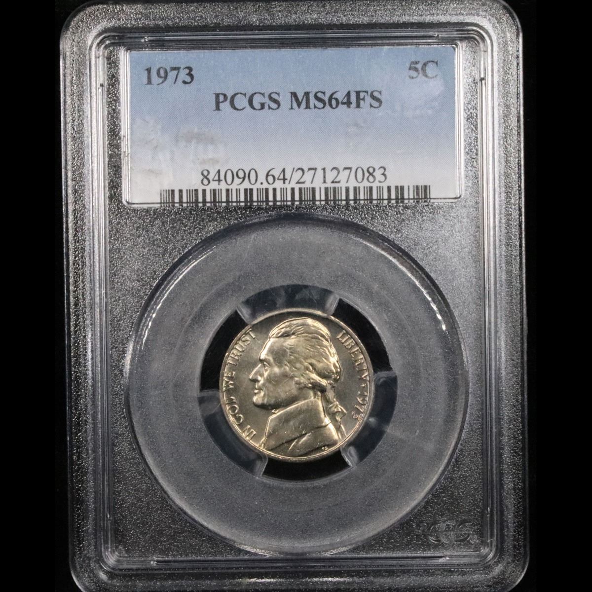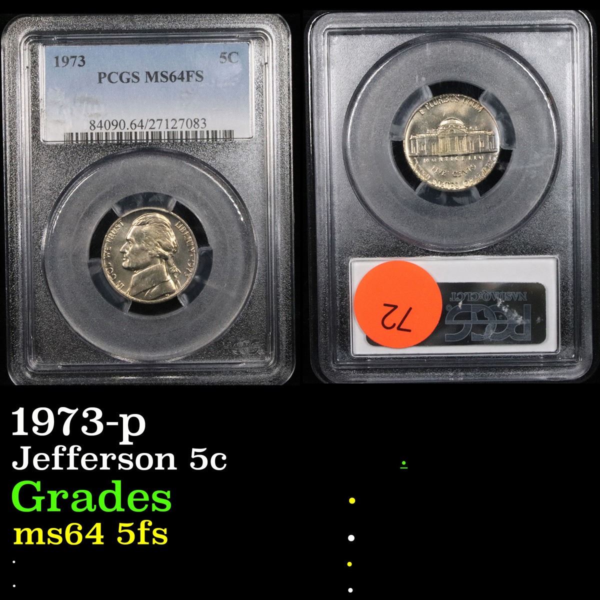 PCGS 1973-p . . Jefferson Nickel 5c Graded ms64 5fs By PCGS.