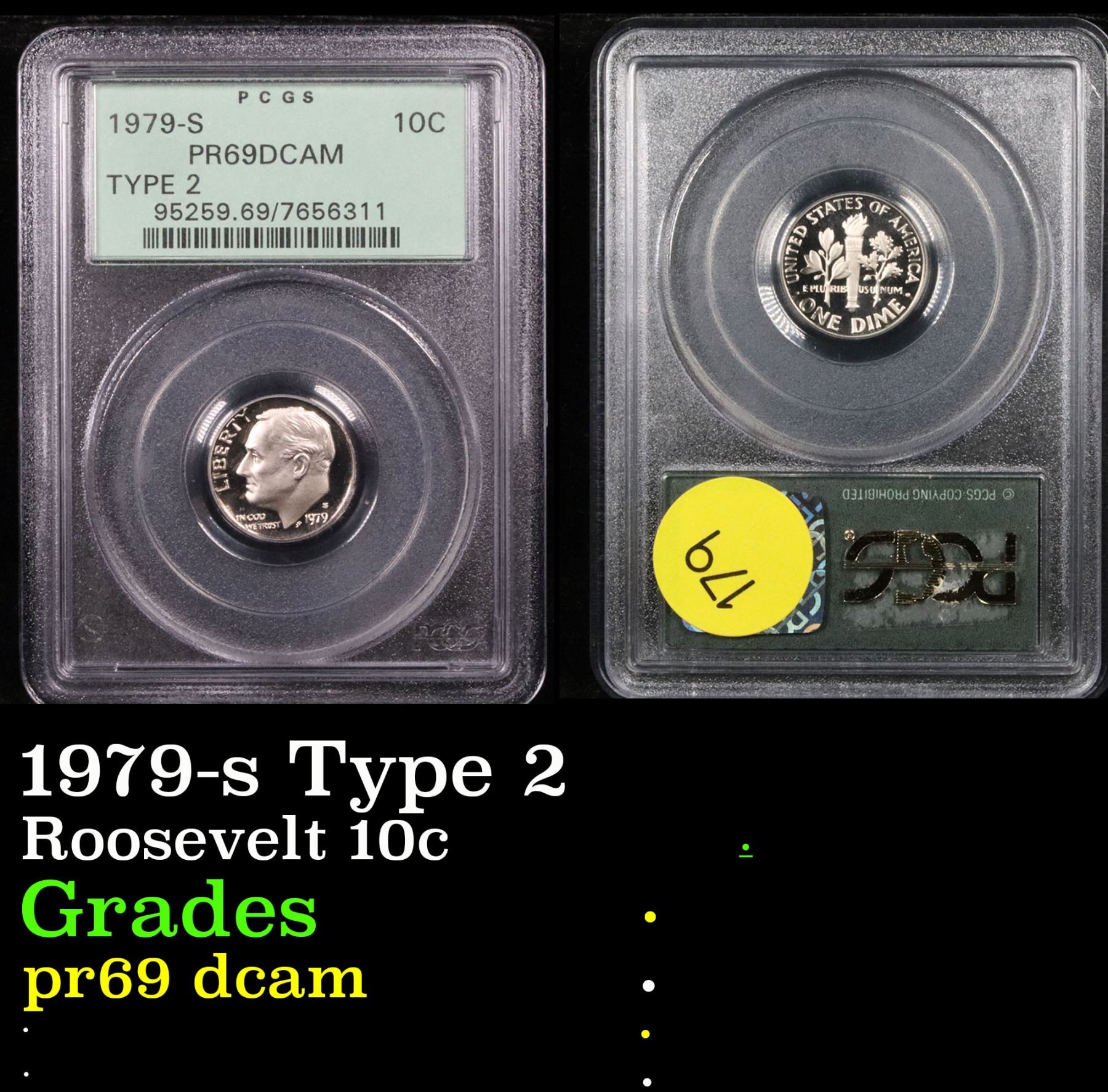 PCGS 1979-s Type 2 . . Roosevelt Dime 10c Graded pr69 dcam By PCGS.