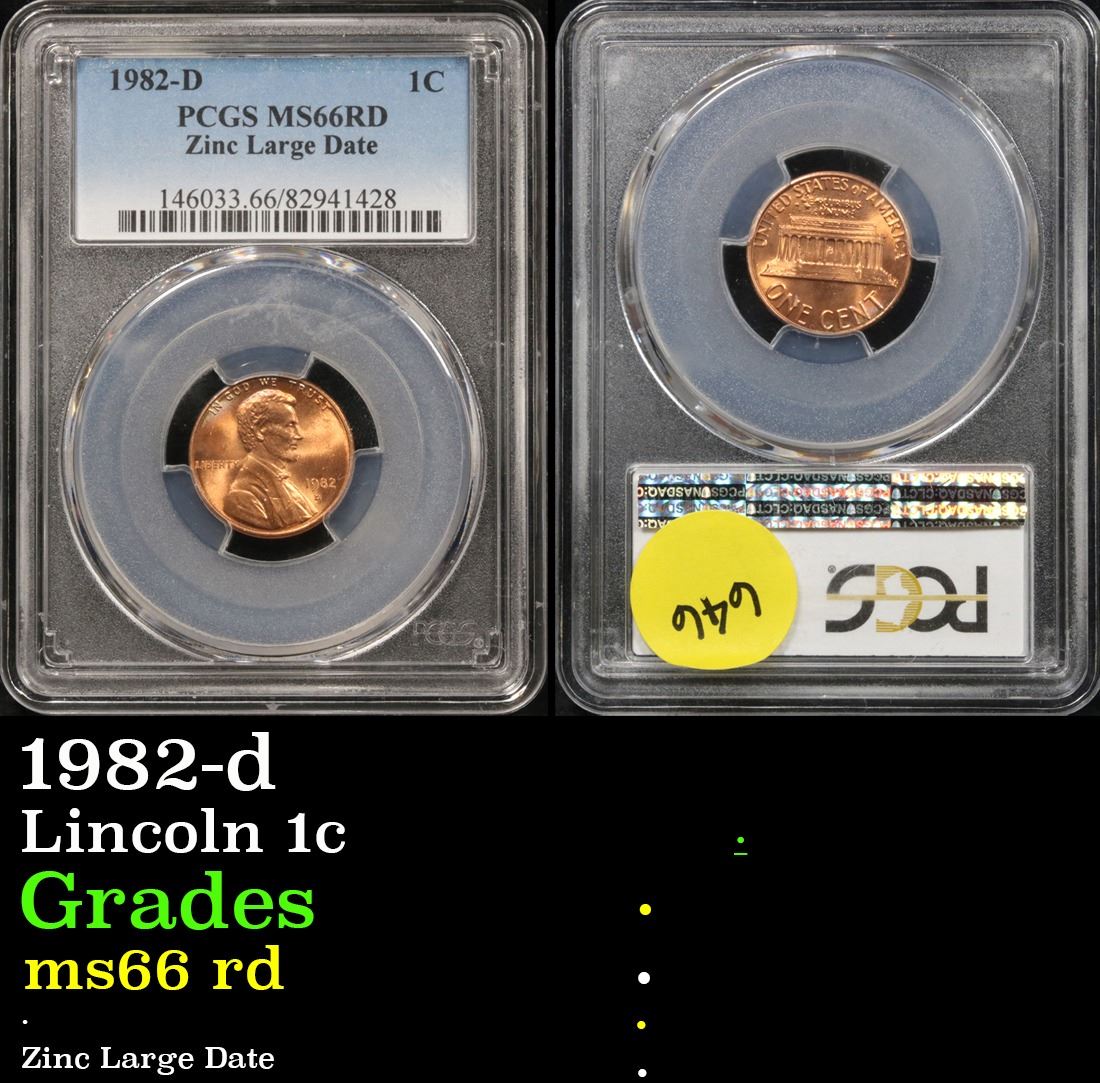 PCGS 1982-d Zinc Large Date Lincoln Cent 1c Graded GEM+ RD By PCGS.