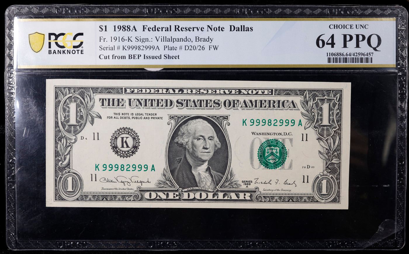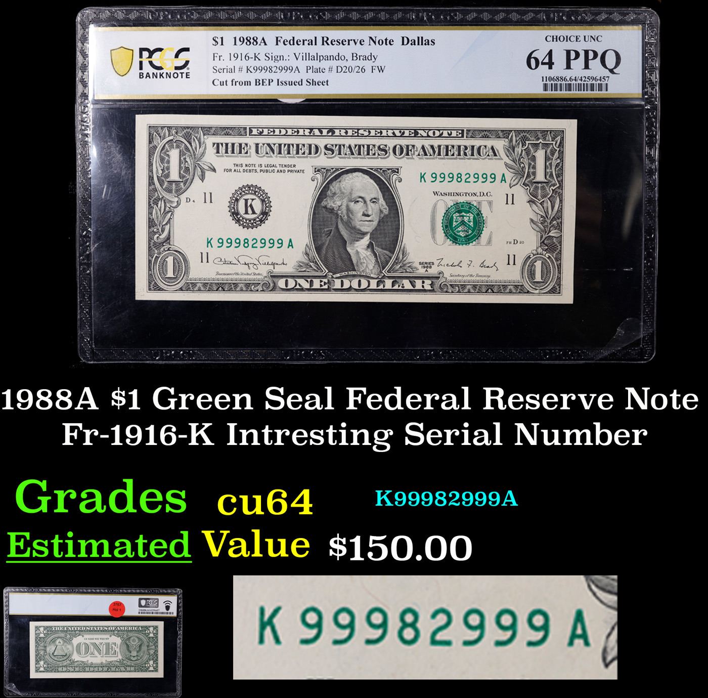 PCGS 1988A $1 Green Seal Federal Reserve Note Fr-1916-K Graded cu64 By PCGS.
