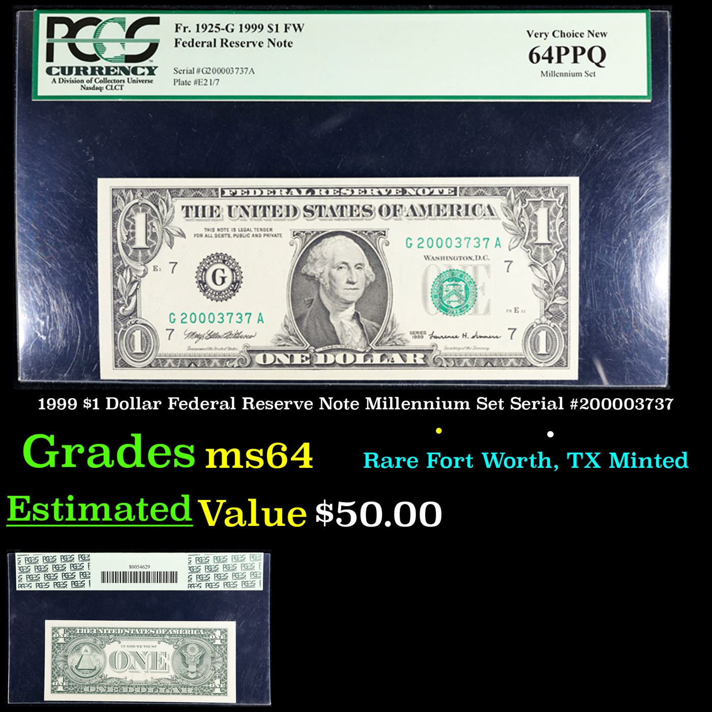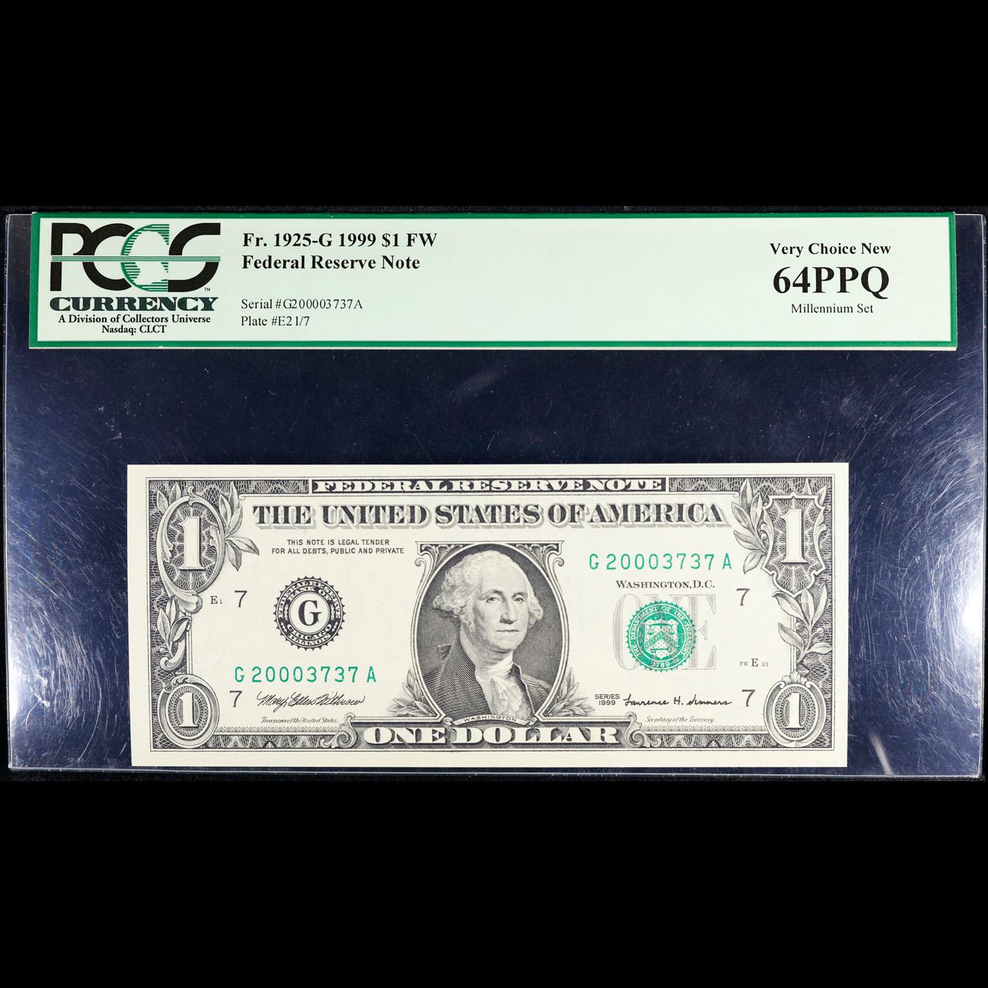 PCGS 1999 $1 Dollar Federal Reserve Note Millennium Set Serial #200003737 Graded ms64 By PCGS