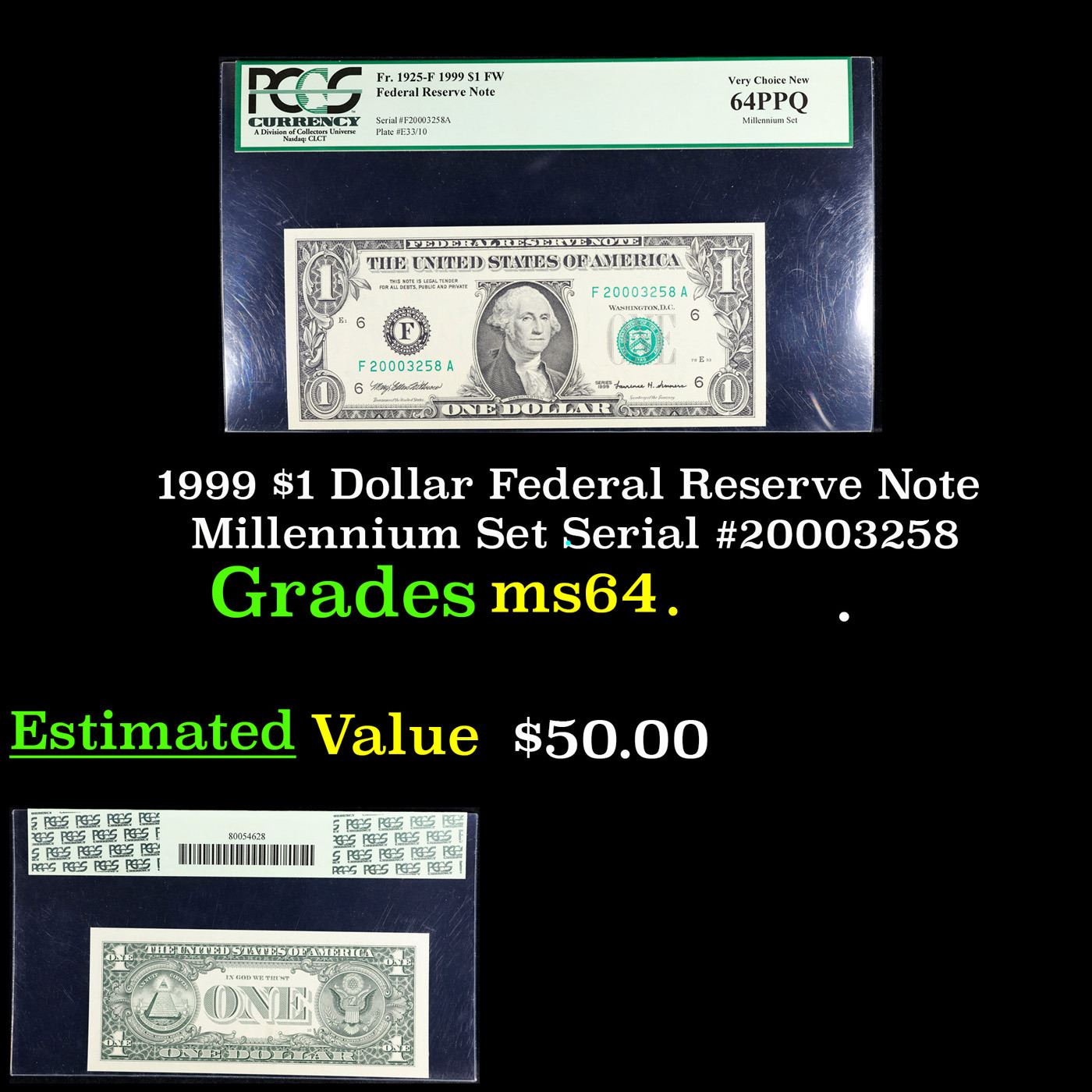 PCGS 1999 $1 Dollar Federal Reserve Note Millennium Set Serial #20003258 Graded ms64 By PCGS.