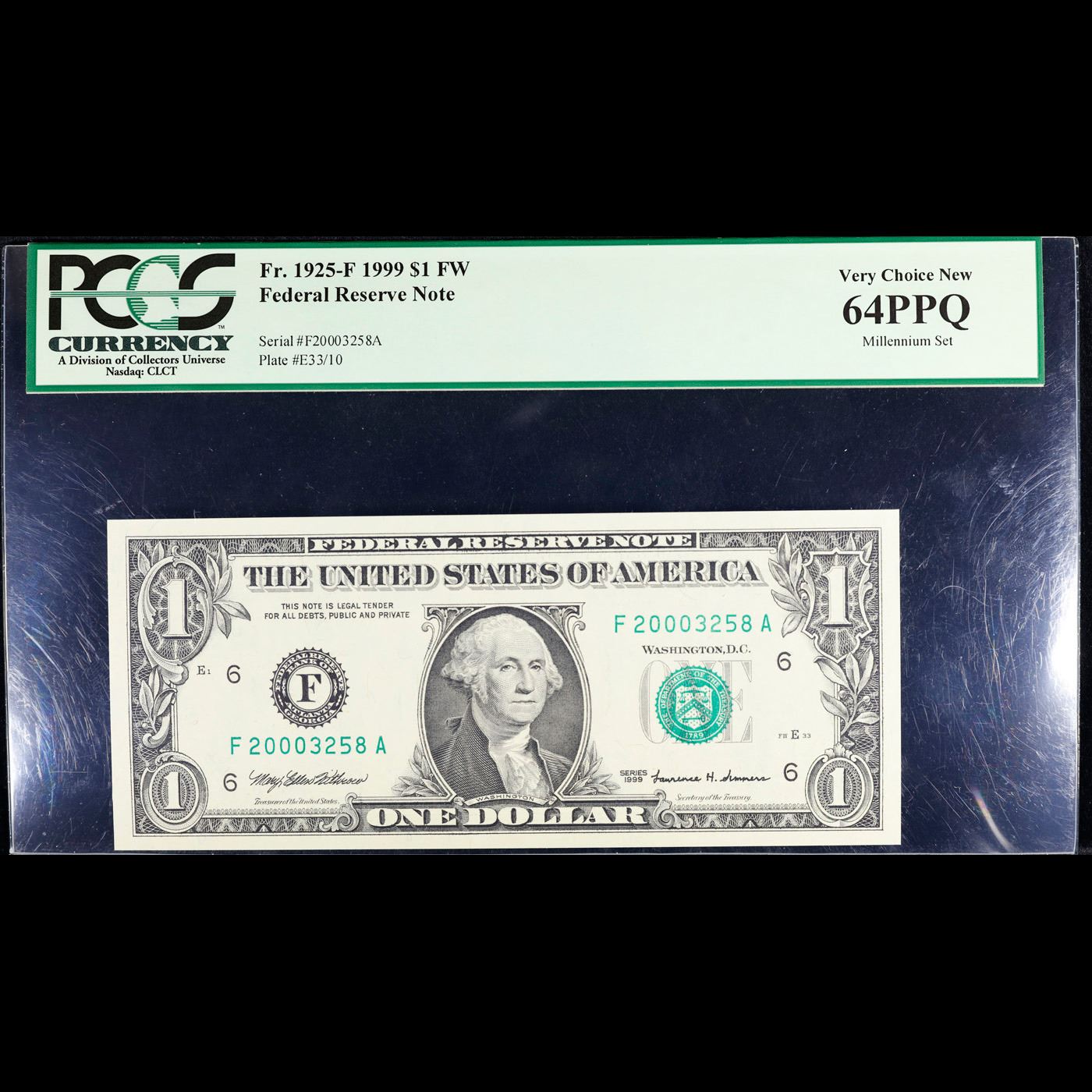 PCGS 1999 $1 Dollar Federal Reserve Note Millennium Set Serial #20003258 Graded ms64 By PCGS