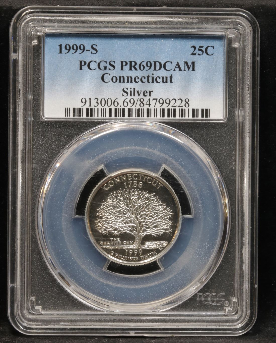 PCGS 1999-s Silver Connecticut . . Washington Quarter 25c Graded pr69 dcam By PCGS.