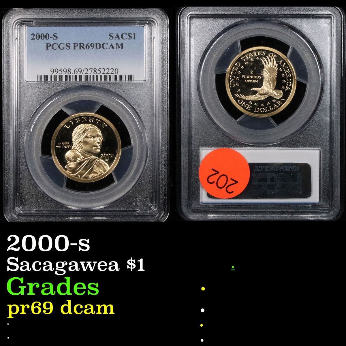 PCGS 2000-s . . Sacagawea Gold Dollar 1 Graded pr69 dcam By PCGS.