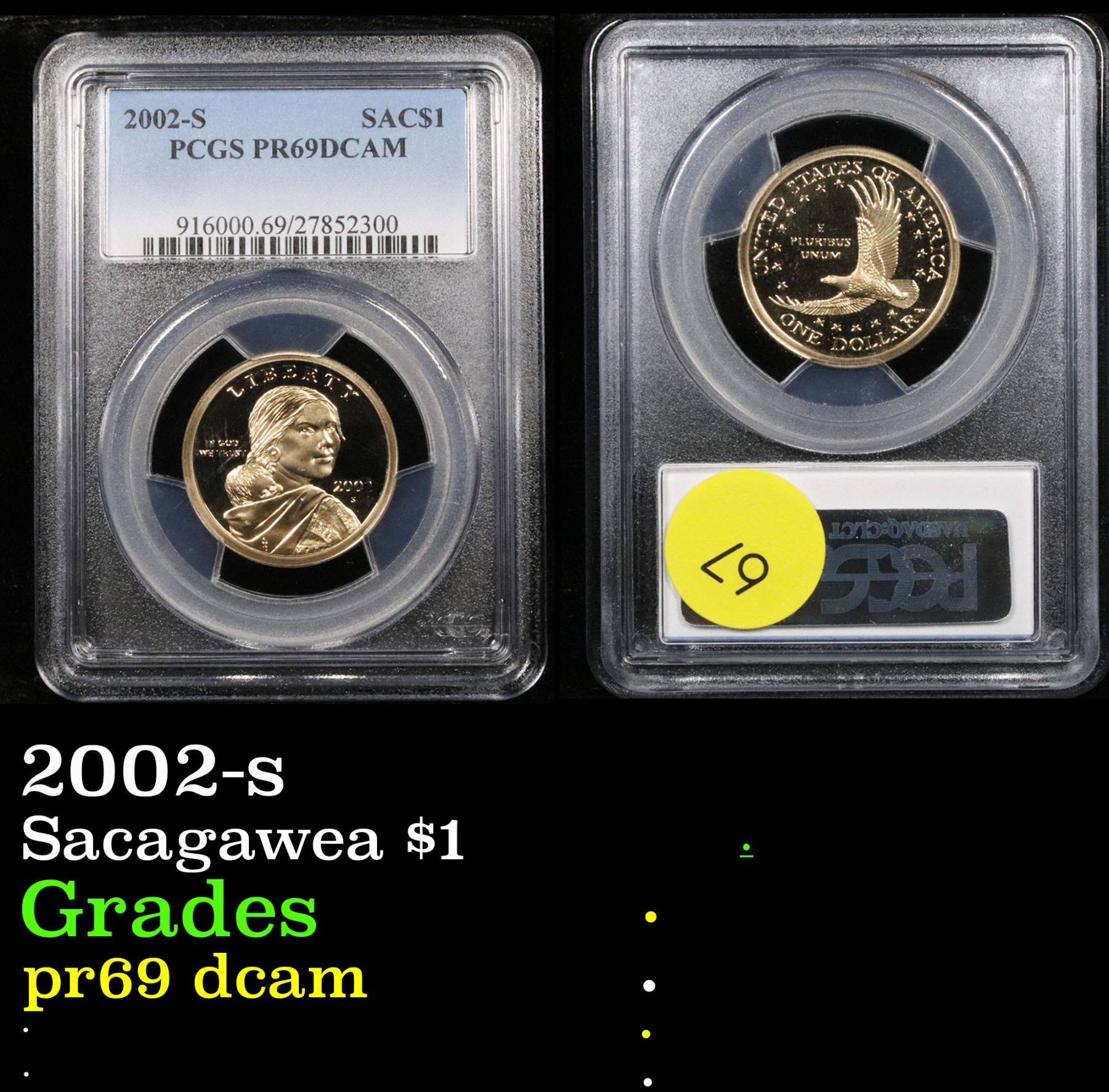 PCGS 2002-s . . Sacagawea Dollar 1 Graded pr69 dcam By PCGS.