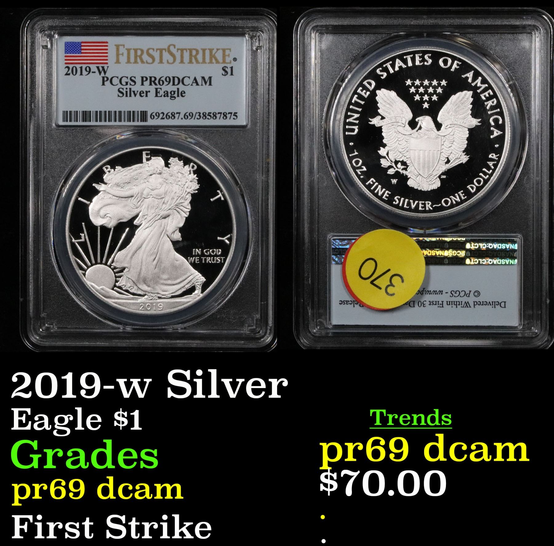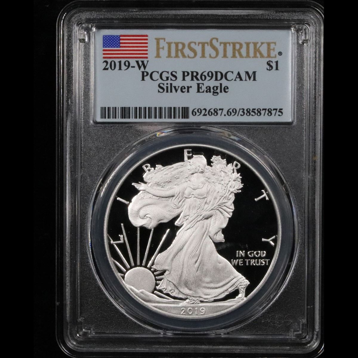 PCGS 2019-w Silver First Strike . Silver Eagle Dollar $1 Graded pr69 dcam By PCGS.