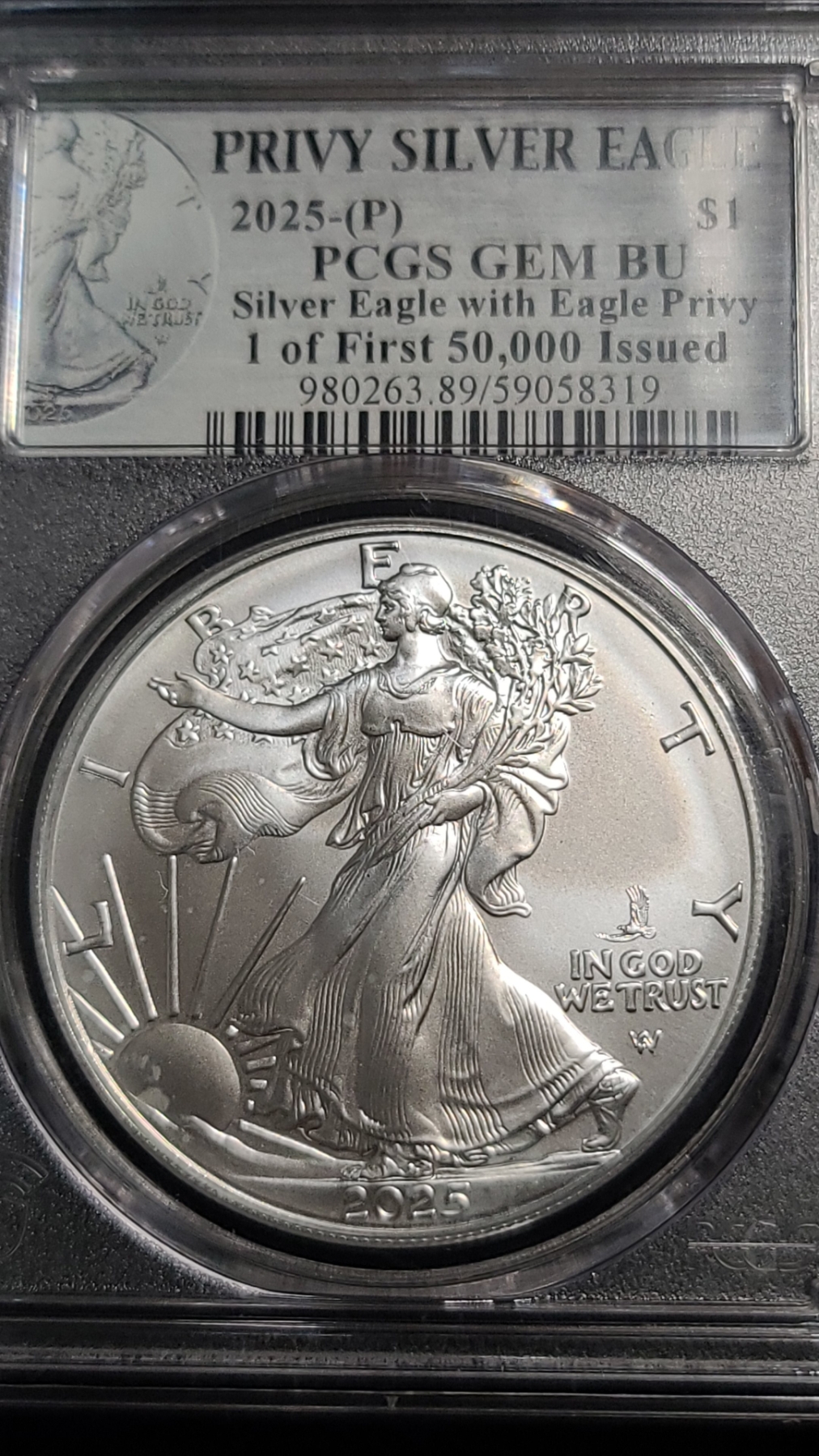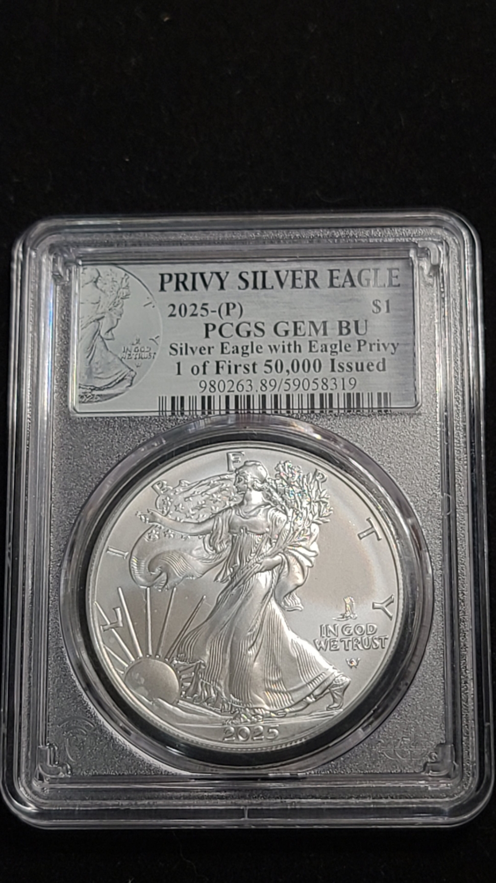 PCGS 2025-P GEM BU Silver American Eagle With Eagle Privy 1 Of First 50,000 Issued