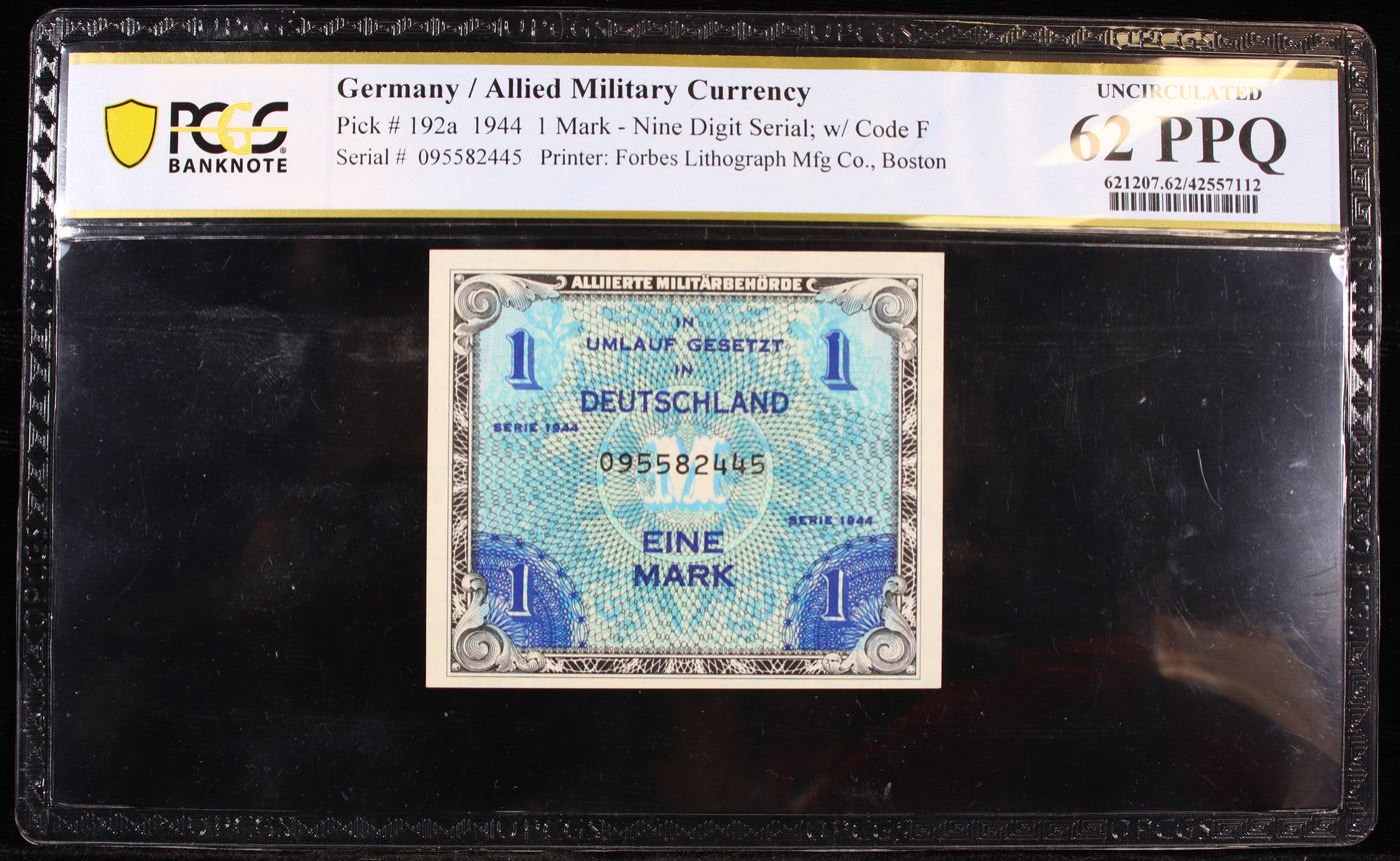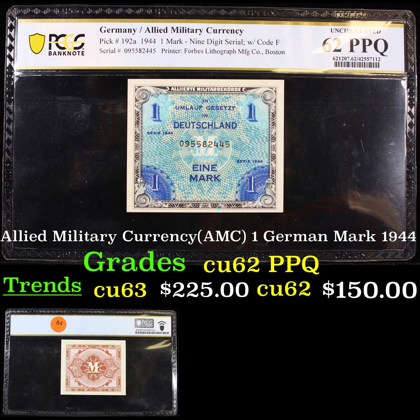 PCGS Allied Military Currency (AMC) 1 German Mark 1944 Graded cu62 PPQ By PCGS. Allied Military Currency ("AMC") was a form of currency issued by the Allied powers during World War II, to be issued to troops entering liberated or newly occupied countries, as a form of currency control. \