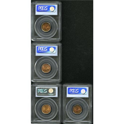 <B>PCGS Cent quartet including:</B></I> 1949 A between denticles, MS65 Red PCGS; 1953 NSF, MS64 Red PCGS; 1955 SF, MS65 Red PCGS; and a 1956 MS65 Red PCGS.