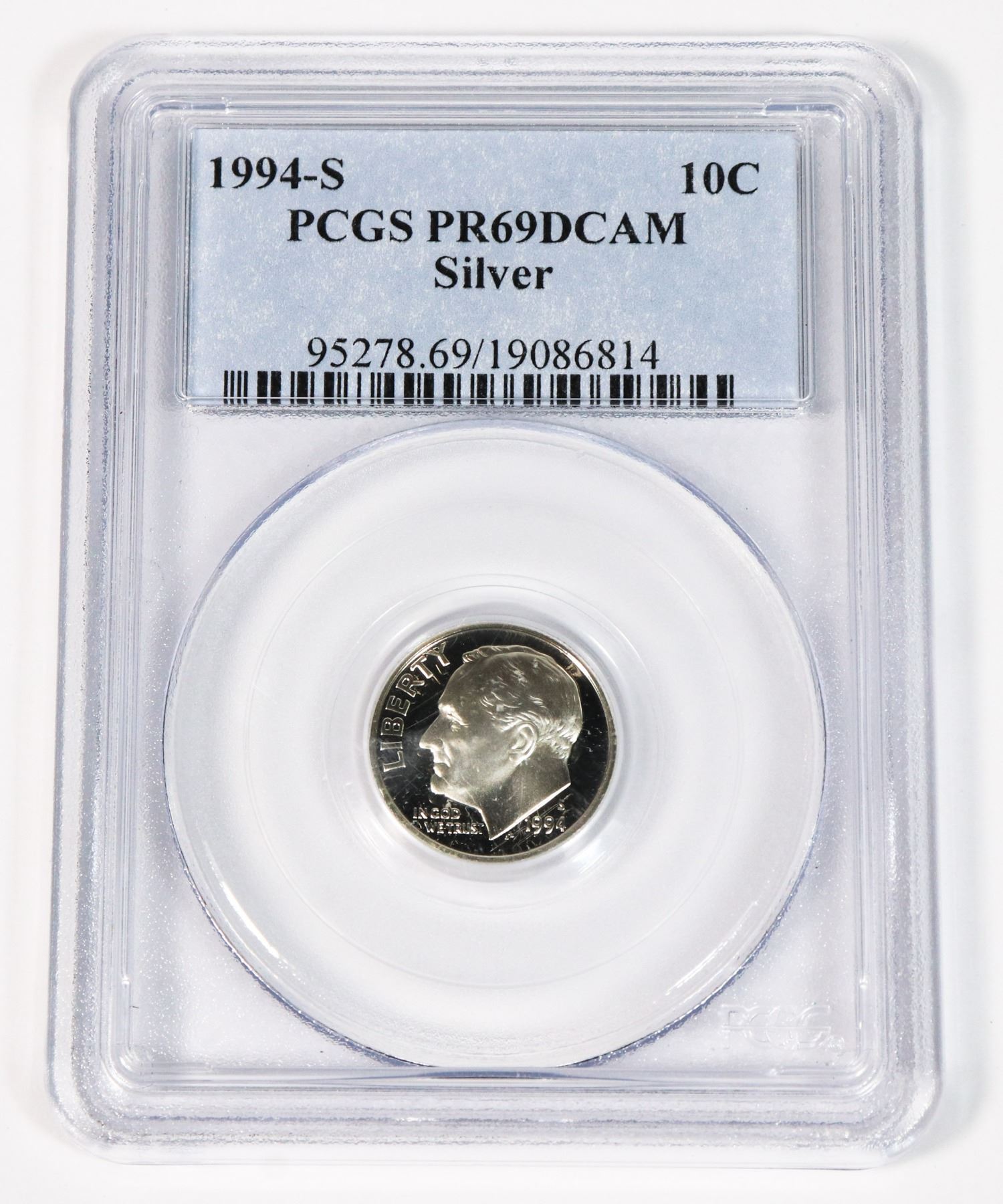 PCGS GRADED PR69 1994-S SILVER USA ROOSEVELT DIME