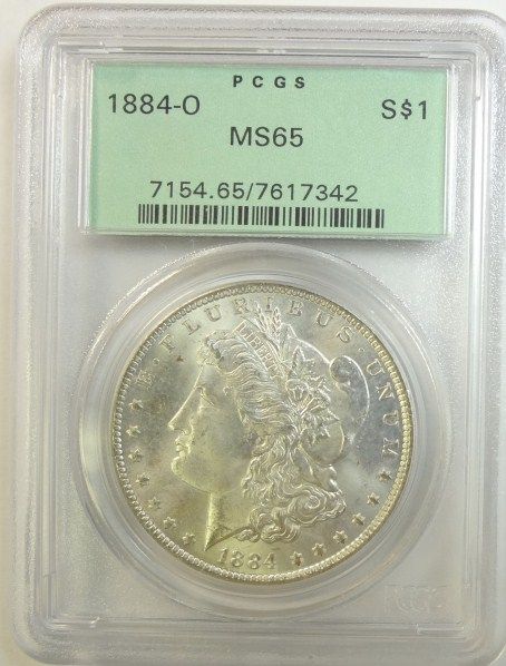 PCGS Green Label 1884-O $1, MS65 frosty white luster