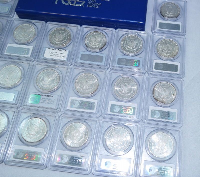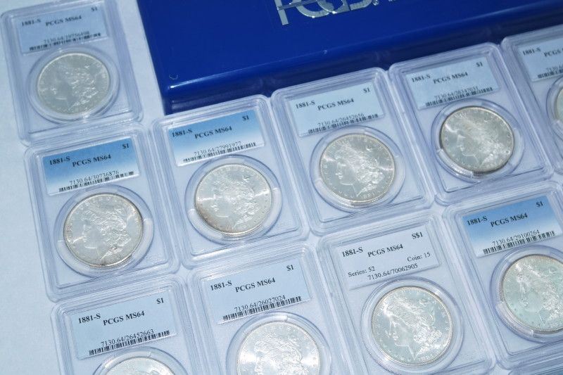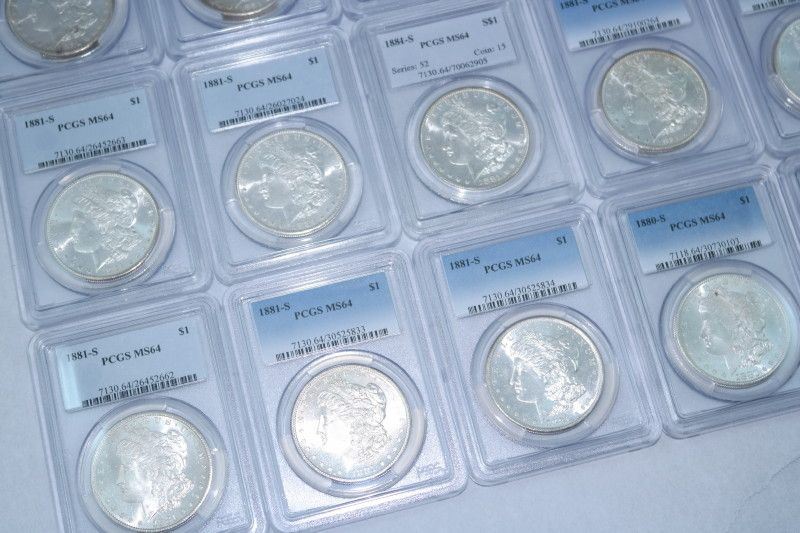 This item comes from our consignors vault in Chicago. Please allow 2-4 weeks for delivery. Winner of auction shall receive a Lot of (20-coins) MS64 PCGS Morgan Silver Dollars, precisely resembling the coins shown in pictures. Note: This is a stock photo. Your (20-coins) will be hand-picked at random. All coins will be in PCGS MS64 grade, Mixed years and Mint mark of our choice.
