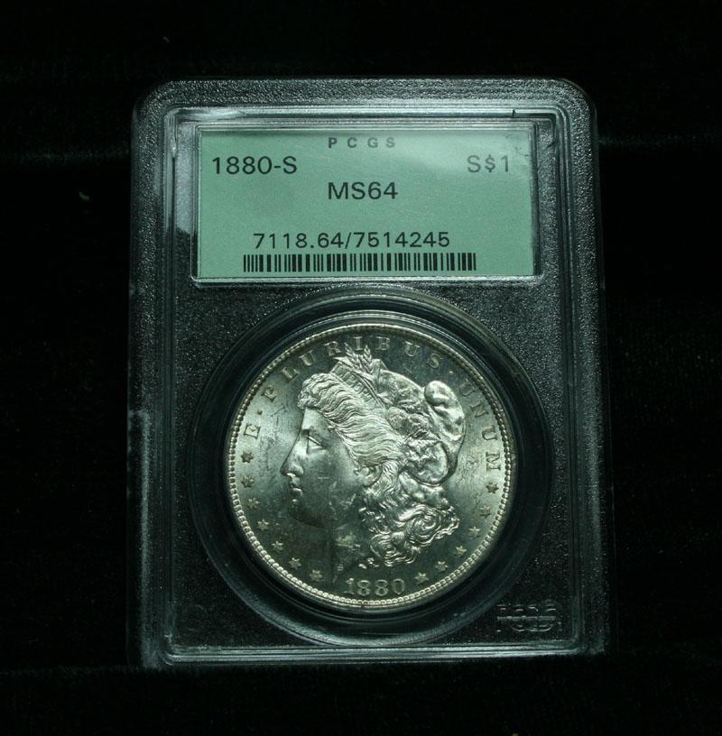 Graded by America's #1 and harshest grading company PCGS. PCGS in their first years graded harsher than they do today. Premium is generally added to the Original Green Holders, referred to as OGH, as a grade upgrade is often possible. .The Wholesale Greysheet lists ms64 at $108+ and ms65 at $212+. Estimated Value $150