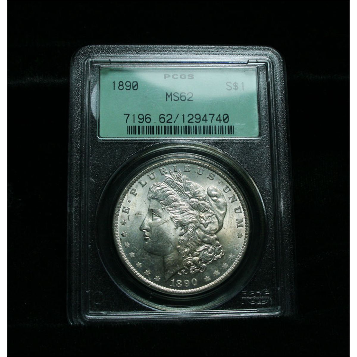 Nice example with blazing luster and light toning. Graded by America's #1 and harshest grading company PCGS. PCGS in their first years graded harsher than they do today. Premium is generally added to the Original Green Holders, referred to as OGH, as a grade upgrade is often possible. .The Wholesale Greysheet lists ms63 at $66+. Estimated Value $60