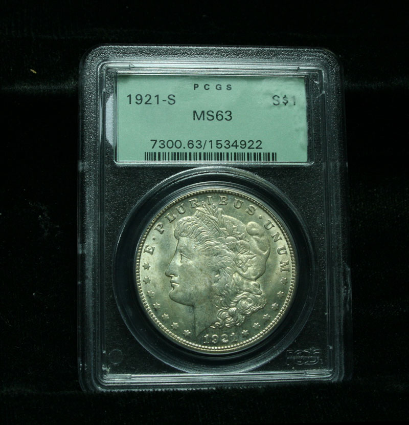 Final Year of Issue. A very nice golden toned example. Graded by America's #1 and harshest grading company PCGS. PCGS in their first years graded harsher than they do today. Premium is generally added to the Original Green Holders, referred to as OGH, as a grade upgrade is often possible. The Wholesale Greysheet lists ms63 at $68 and ms64 at $130. Estimated Value $100