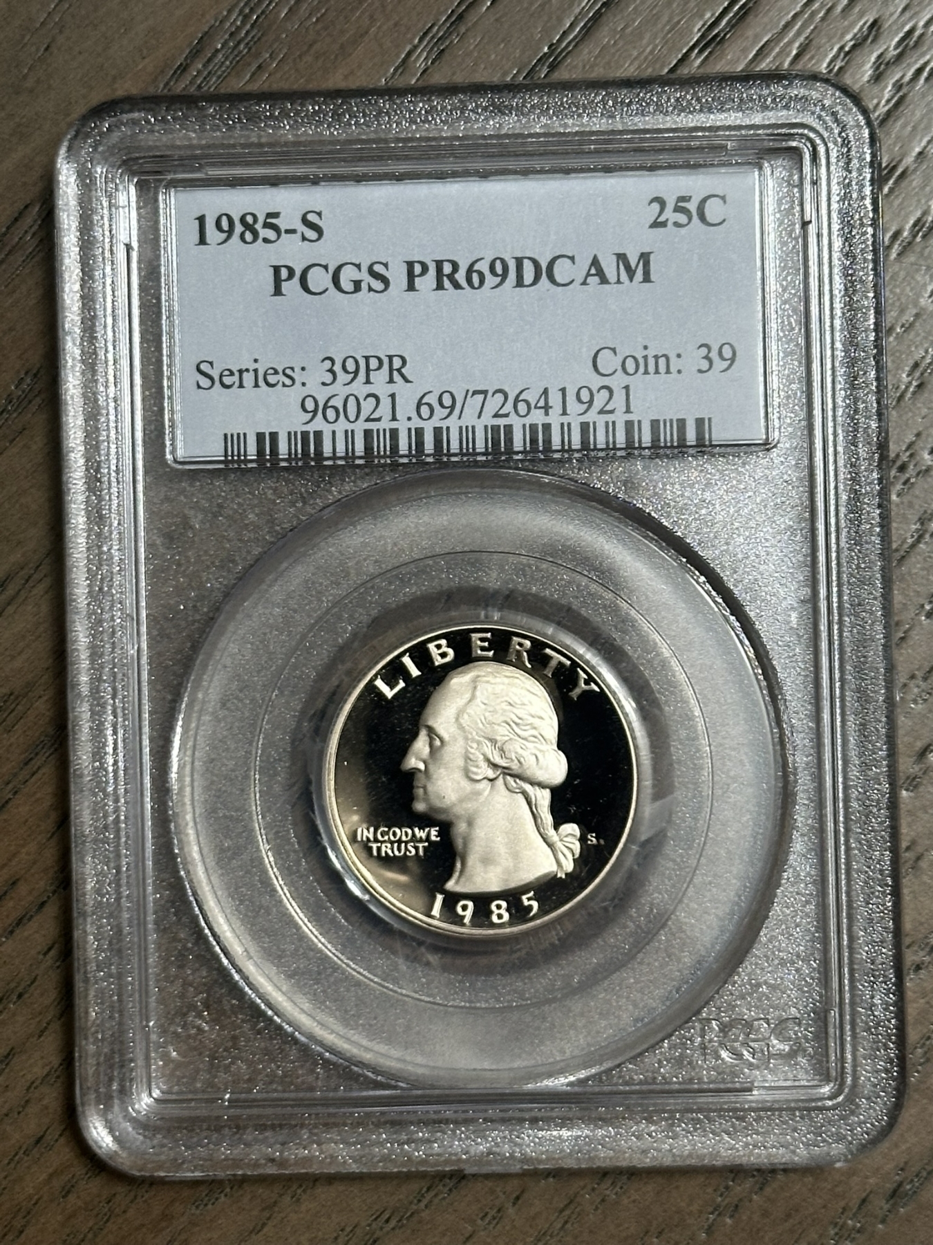 PCGS PR69 DCAM 1985-S Washington Quarter