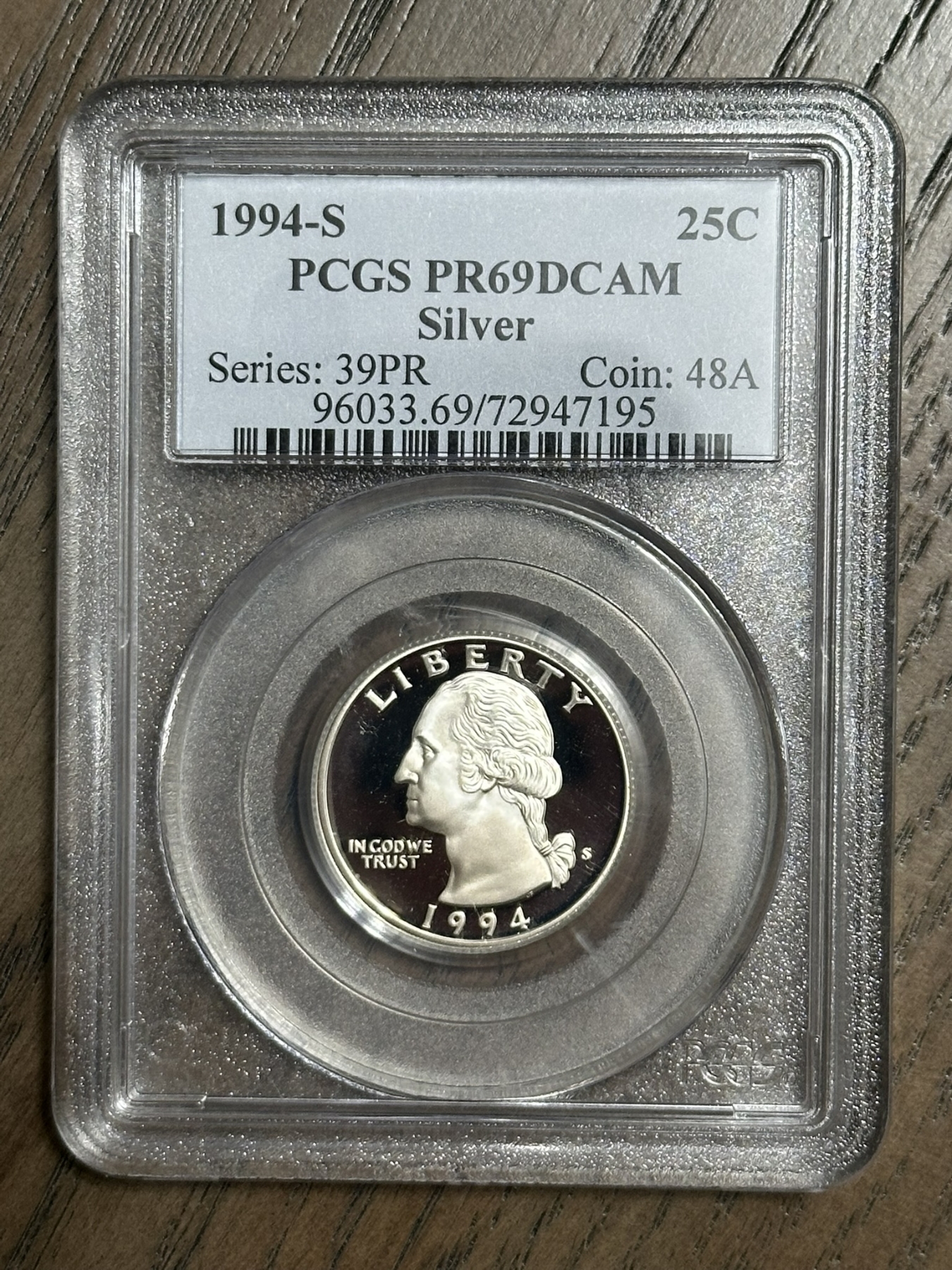 PCGS PR69 DCAM 1994-S Silver Washington Quarter