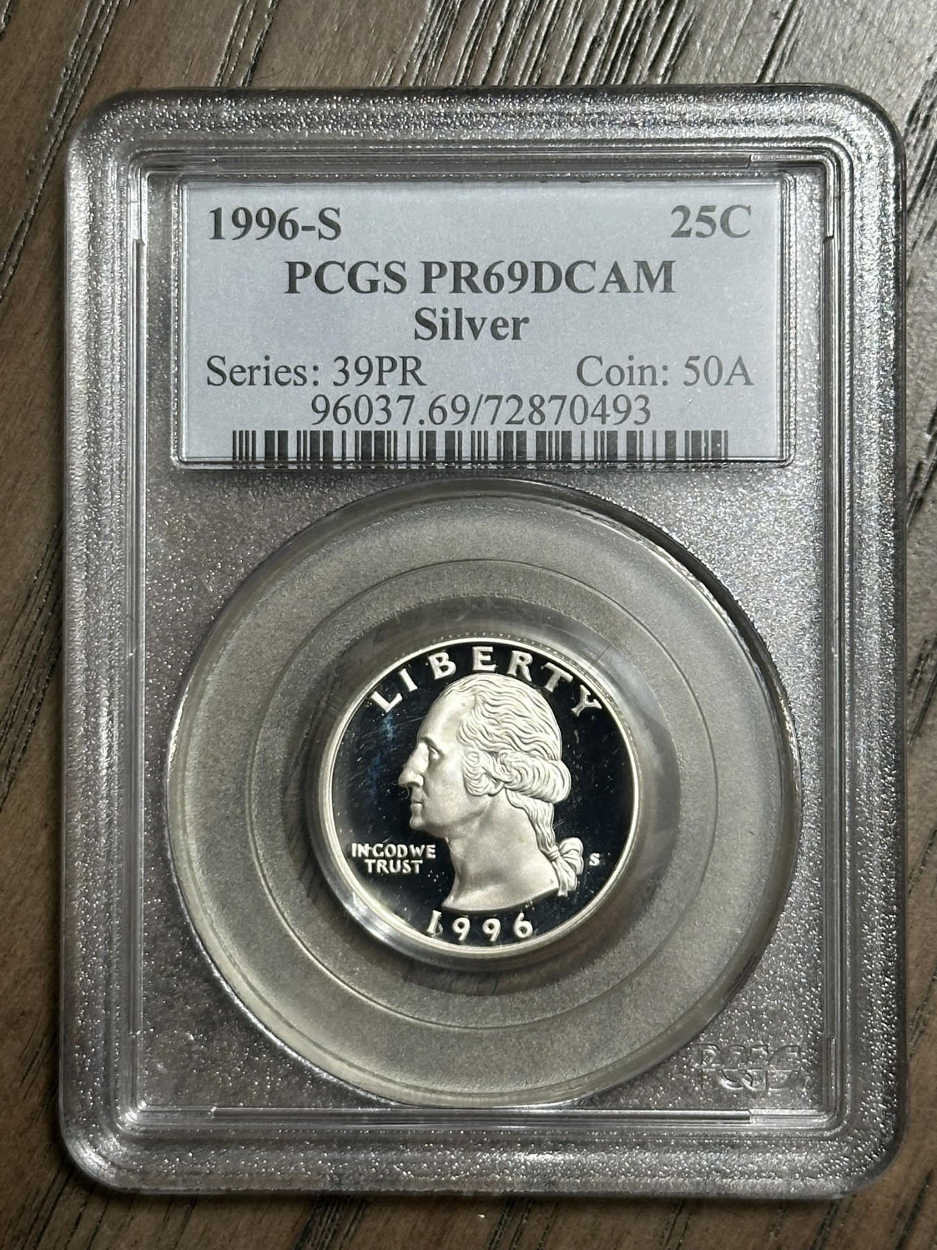 PCGS PR69 DCAM 1996-S Silver Washington Quarter