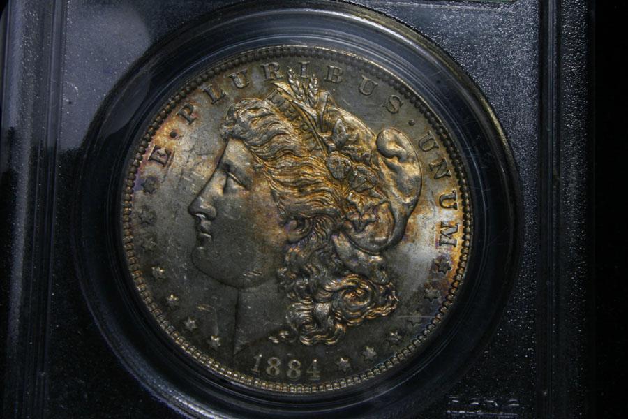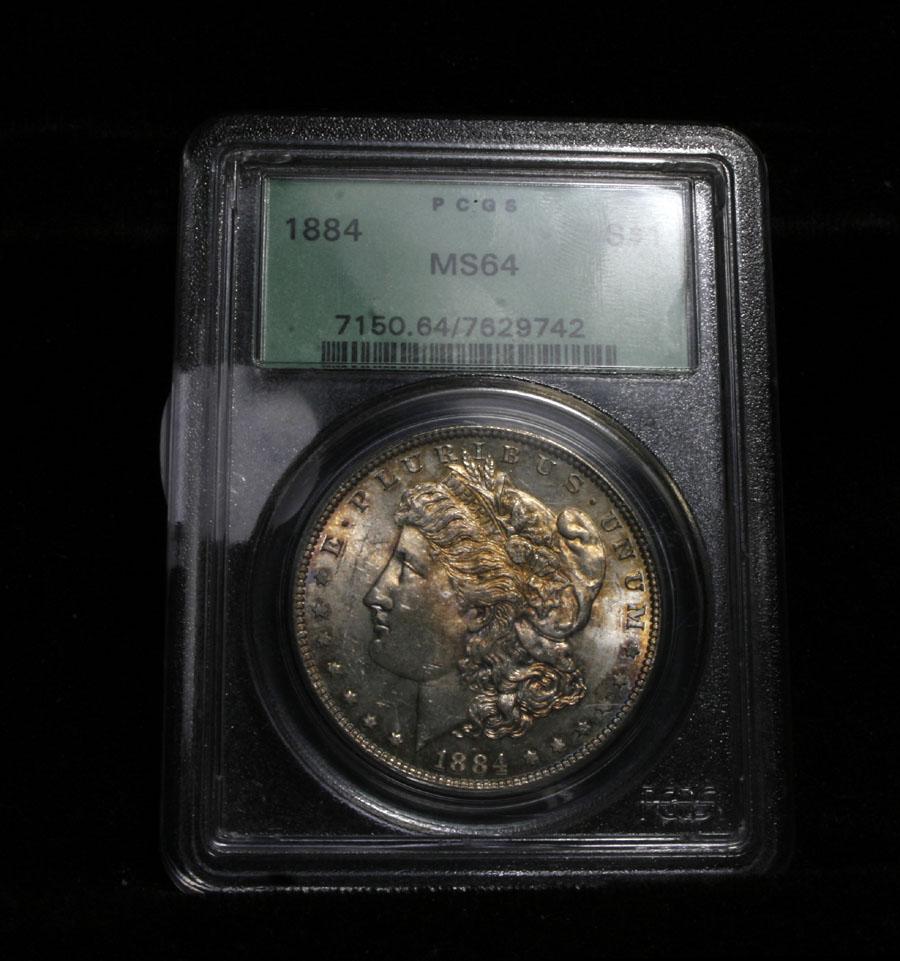 This stunning coin has several great things going for it. One it’s a stunning Rainbow toned coin. Second its graded by PCGS, and third its in their OGH (Original Green Holders), which it is uniformly recognized were more harshly graded then today, and presents a possible upgrade, especially since PCGS incorporated "eye appeal" into their grade calculation. The Wholesale Greysheet lists a regular untoned ms64 at $86+, and an untoned ms65 at $290. Estimated Value $200