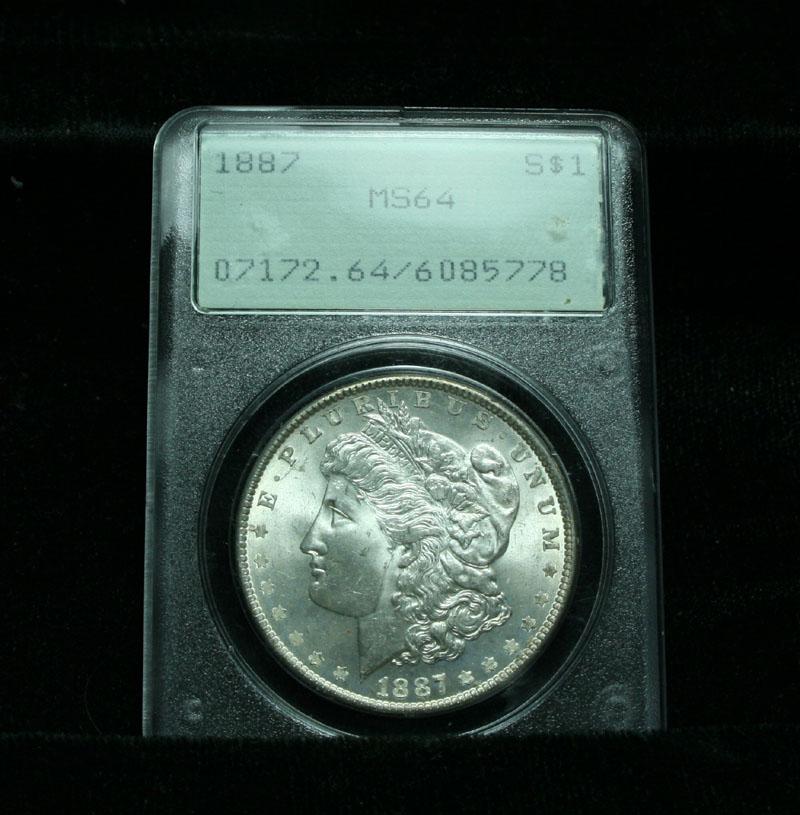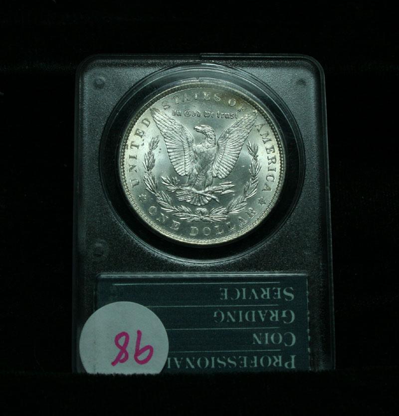 Graded by PCGS in their 1st year of grading. In their first year of grading PCGS holdered their coins in a smaller holder dubbed the "rattler" as that is the sound they made when you shook them. In their first year PCGS under graded most coins in order to establish themselves and gain a reputation. Most of these coins have since been "cracked" out and sent in for regrading, where a substantial amount garner a 1-2 point higher grade. These "rattler" coins trade at a significant premium, generally closer to one grade above the one marked. The Wholesale Greysheet lists ms64 at $108+ and ms65 at $210+. Estimated Value $175